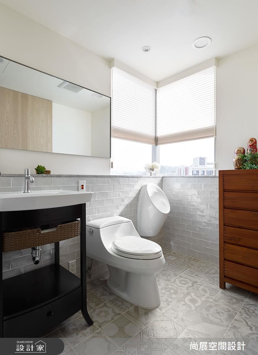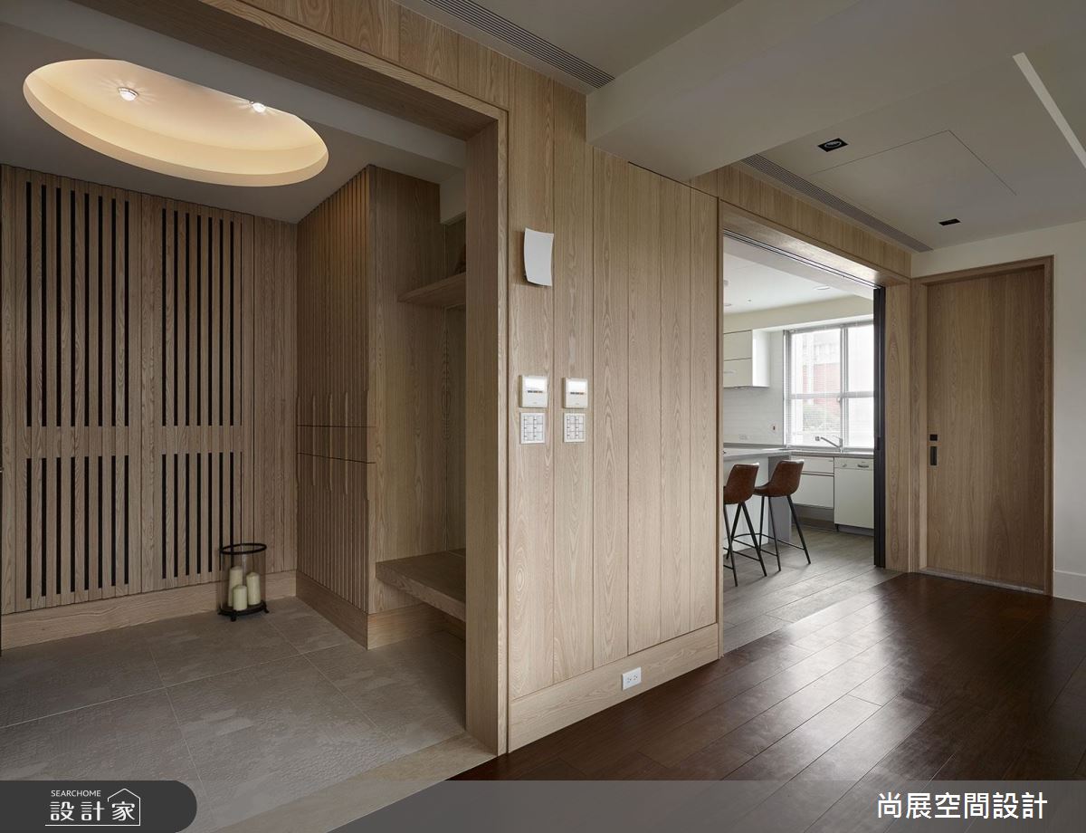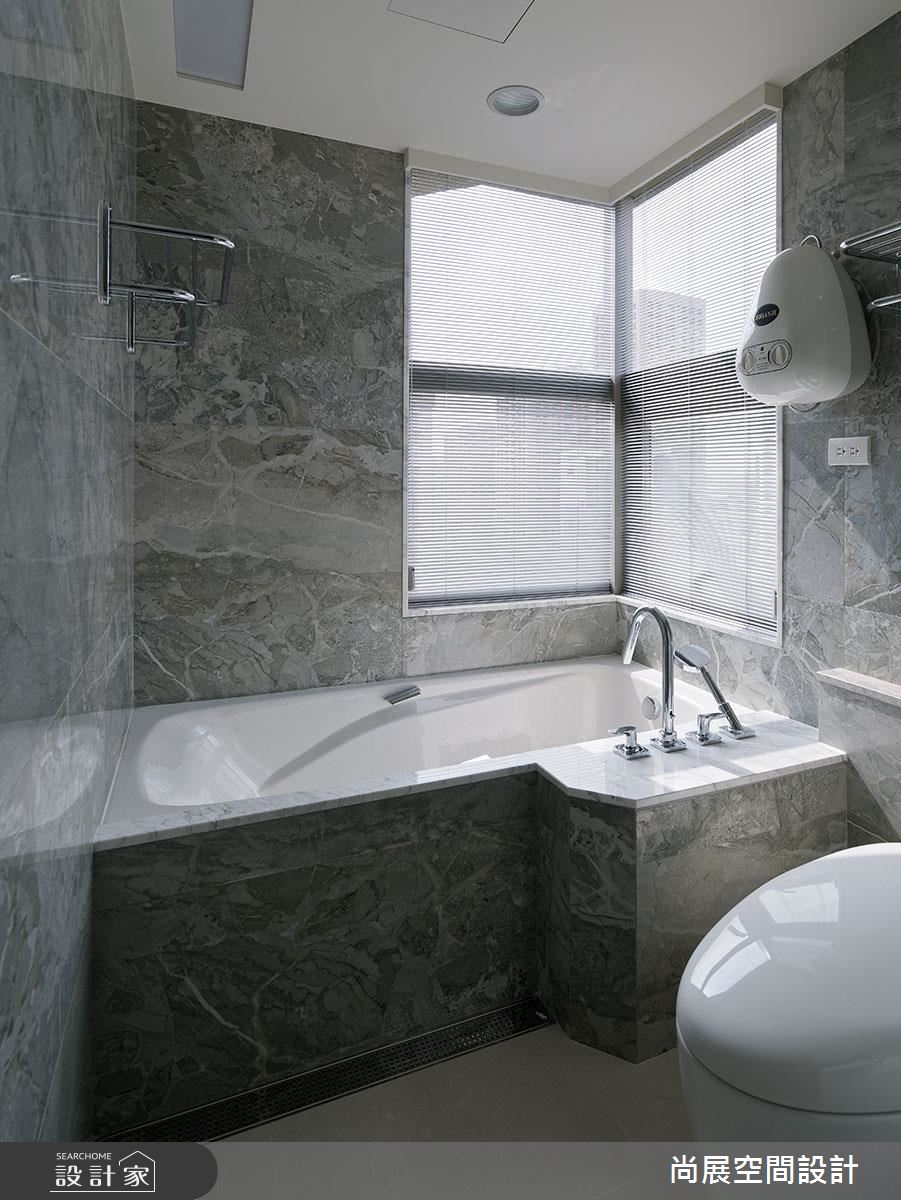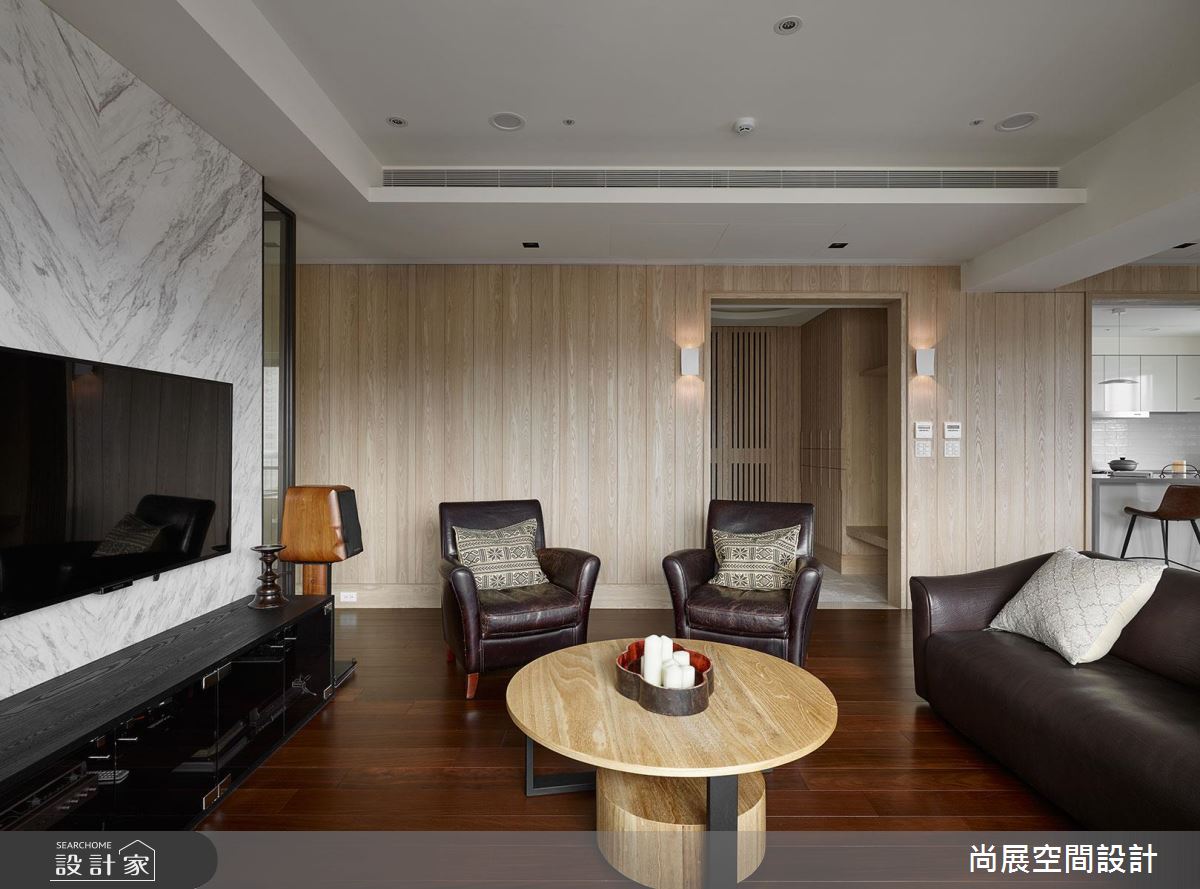 設計師選用大理石或磚材,妝點於玄關、廁浴或電視牆,以淺灰、灰色的紋理彰顯俐落沉靜,搭襯大面積的溫潤木質素材,調和出和煦的居家溫度!