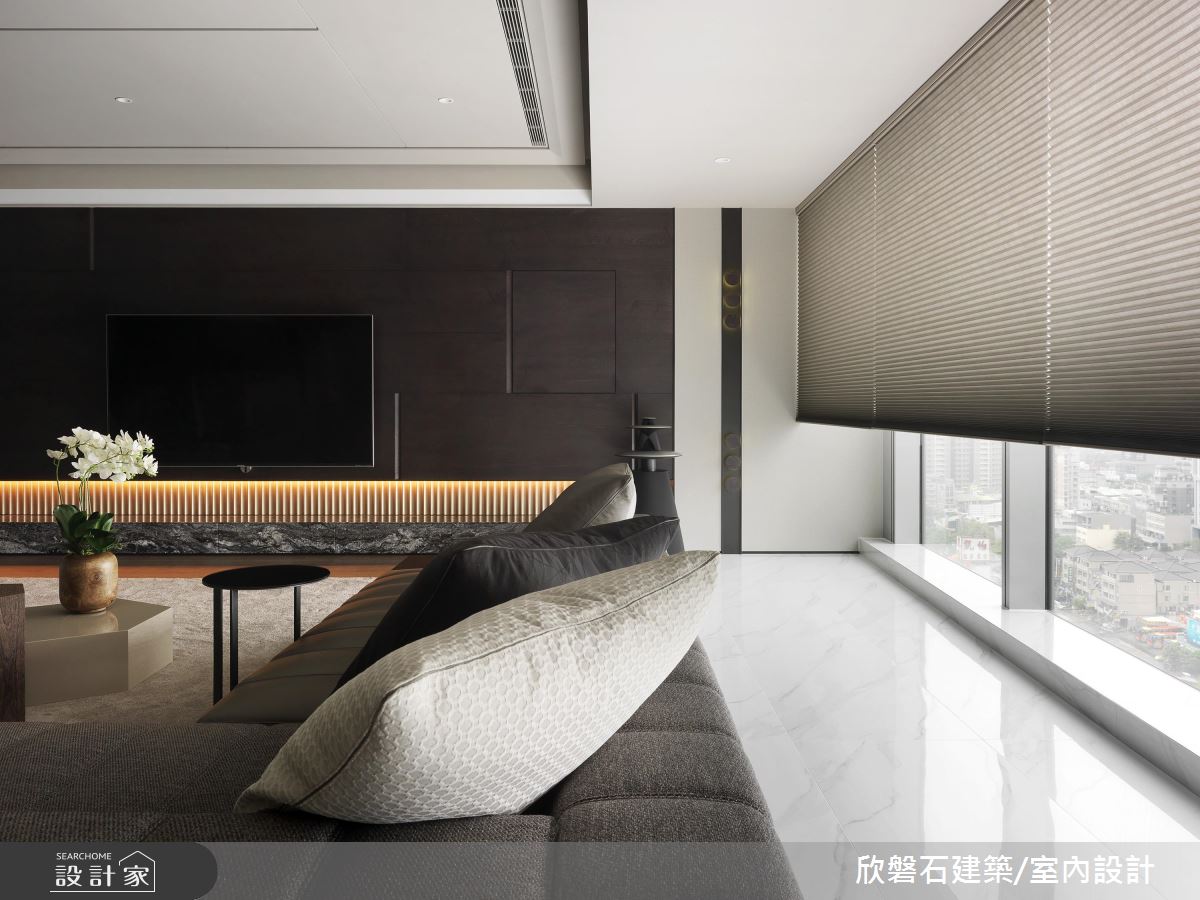 超過百坪的豪宅,設計師保留了大幅的窗景,利用開放式設計,讓城市夜景一覽無遺,更透過虛實相間的設計手法,在滿足收藏品的展示收納需求之餘,也能融入精品藝術的奢華層次。