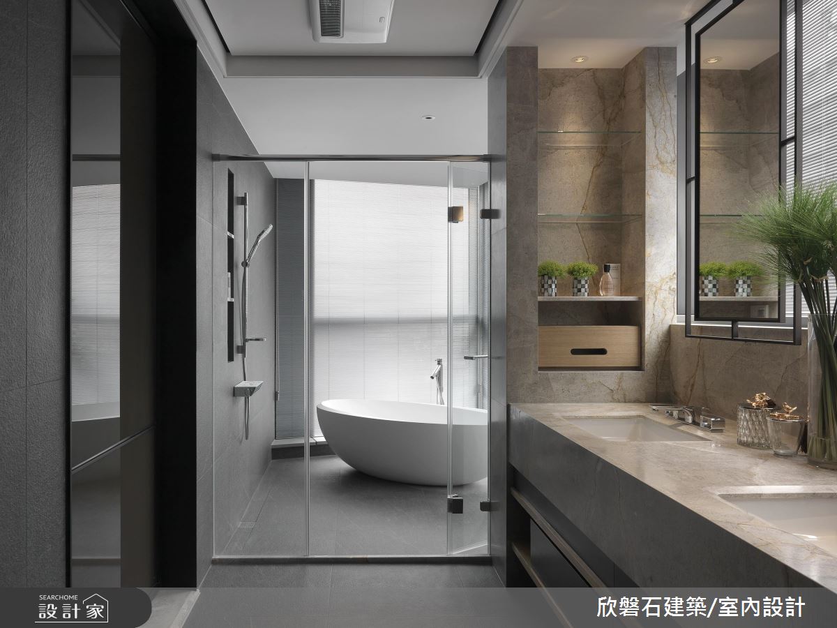 衛浴空間採用乾濕分離設計,洗手檯安排於窗邊,迎進了明亮充裕的採光,檯面則具有石質塊體的厚實大器感,搭配實用的收納機能,營造宛如星級飯店般的洗浴享受。