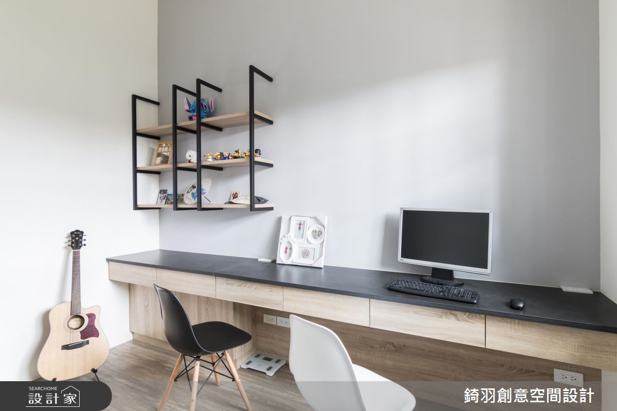 公共空間以簡約溫潤的大地色調為主,搭配布織沙發家具,更顯得溫馨而舒適,窗邊設置一道臥榻,下方可供雜物收納使用的設計,同時達成收納、休閒等功能性,當有比較多的客人來家裡,也不怕沒地方坐。廚房隱身在拉門之後,可以隔絕料理時產生的油煙,門外則延伸電器櫃和雙人吧檯區,以流暢的動線,滿足了多重機能的使用。書房及主臥室皆鋪上了木地板,提升私領域空間的舒適度,並賦予充裕的收納配置,在簡約清爽的空間氛圍中,也兼具實用度的考量。