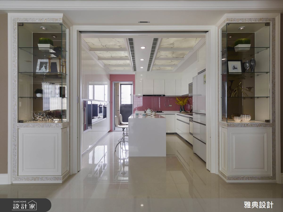 廚房以整套白色廚具,結合局部粉色系的壁面,清柔淡雅的視覺搭配,調和愉悅、輕鬆的烹調環境,讓人心生嚮往。