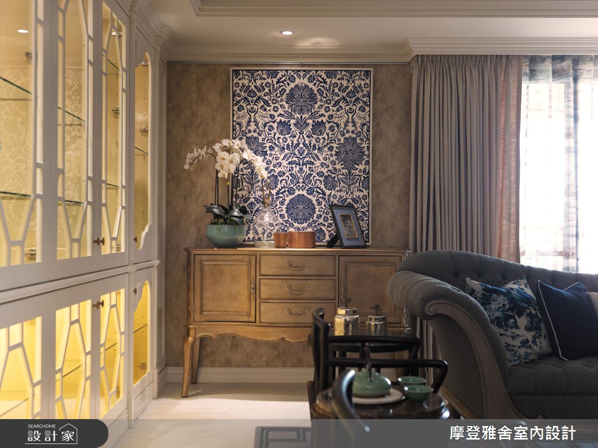 考量到屋主擁有許多古董,設計師特別針對古件款式、大小等事先丈量並編號,量身訂做展示空間,同時,也發揮精湛的美學功力,成功將古董與空間風格完美結合,共築獨特的新殖民地風範!