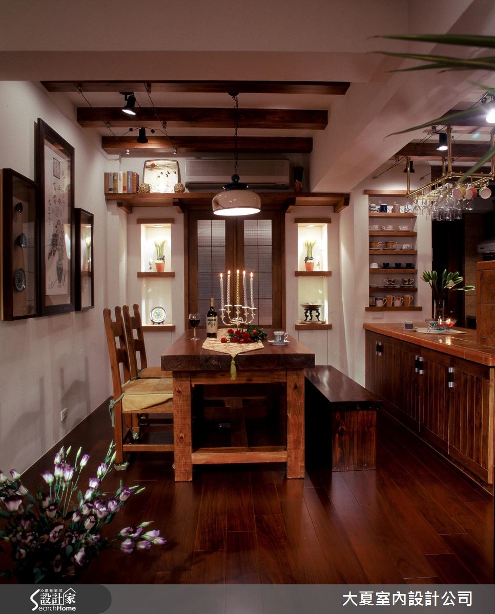 經典的歐式鄉村風成為風格基底,引用沉穩原色質感的木紋飾底,帶來溫暖、安定人心的空間氣息;局部以質材堆砌的造型立面,詮釋豐富的視覺層次;中式字畫、藝術品的結合,替鄉村風引入東方風情,增添優雅細節;角落則藉由層架展示瓷盤美學或是綠意植栽,讓收納機能與風格得以相融合一。