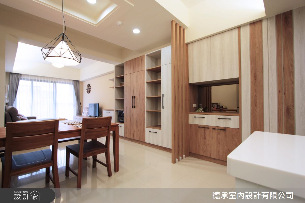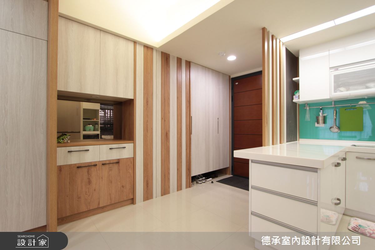 步入居家中,可見開放而獨立的玄關範圍,透過一小道格柵配置,隱約遮蔽進門見窗的視線,同步劃出廚房的所屬地帶,另一側則規劃機能立面,期間穿插木紋與線條,一路從入口銜接至客廳電視牆,形成溫潤簡約的立面表情,同時加入開放式佈局,讓客廳、餐廚相互串聯,浸潤於美好採光中,譜出互動感極佳的生活情境;主臥則將既有隔間作出變動,以換取更寬闊的使用空間,除了大容量的衣櫃配置外,更讓床頭、書桌呈一體成型設計,使學習與睡眠同等舒適!