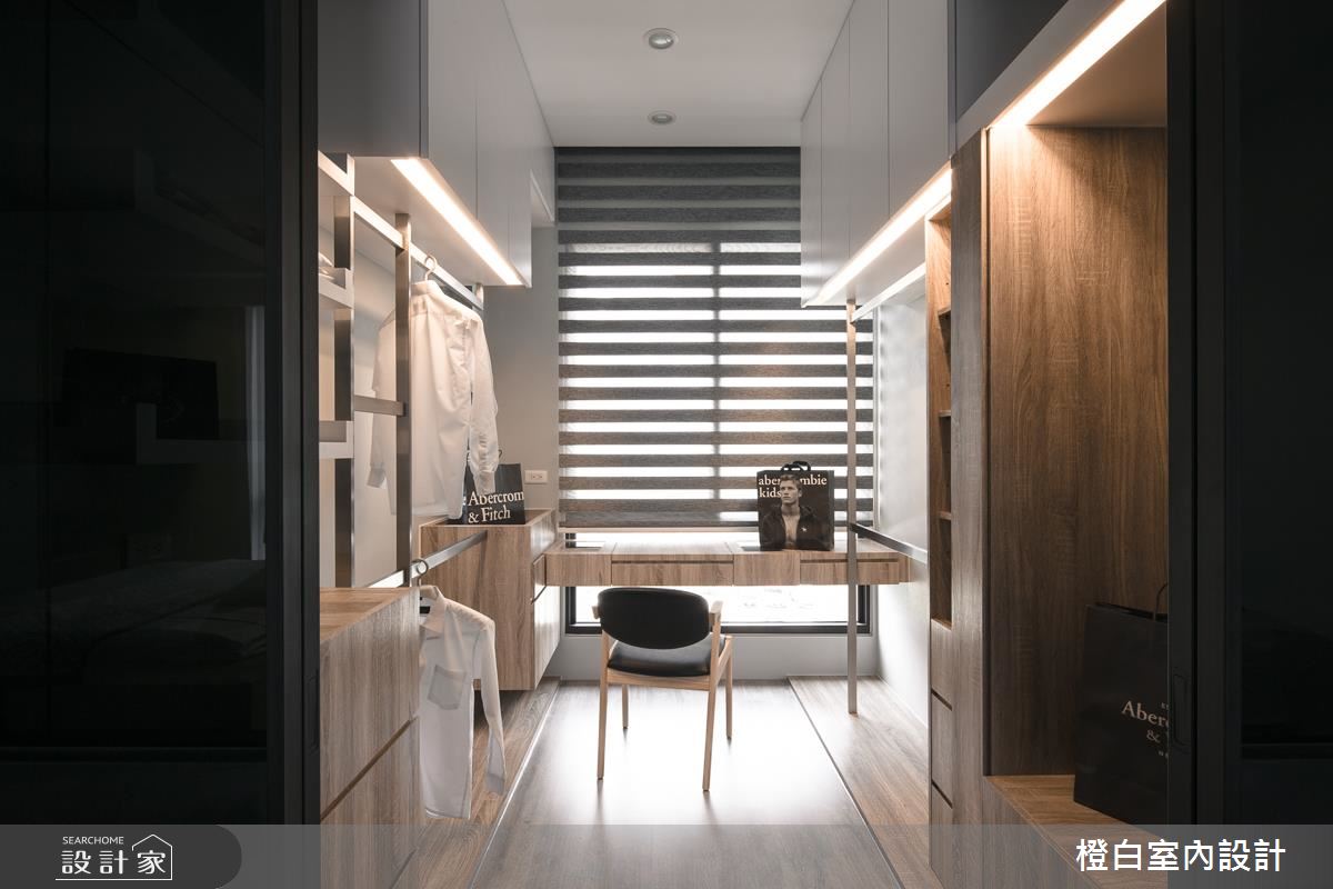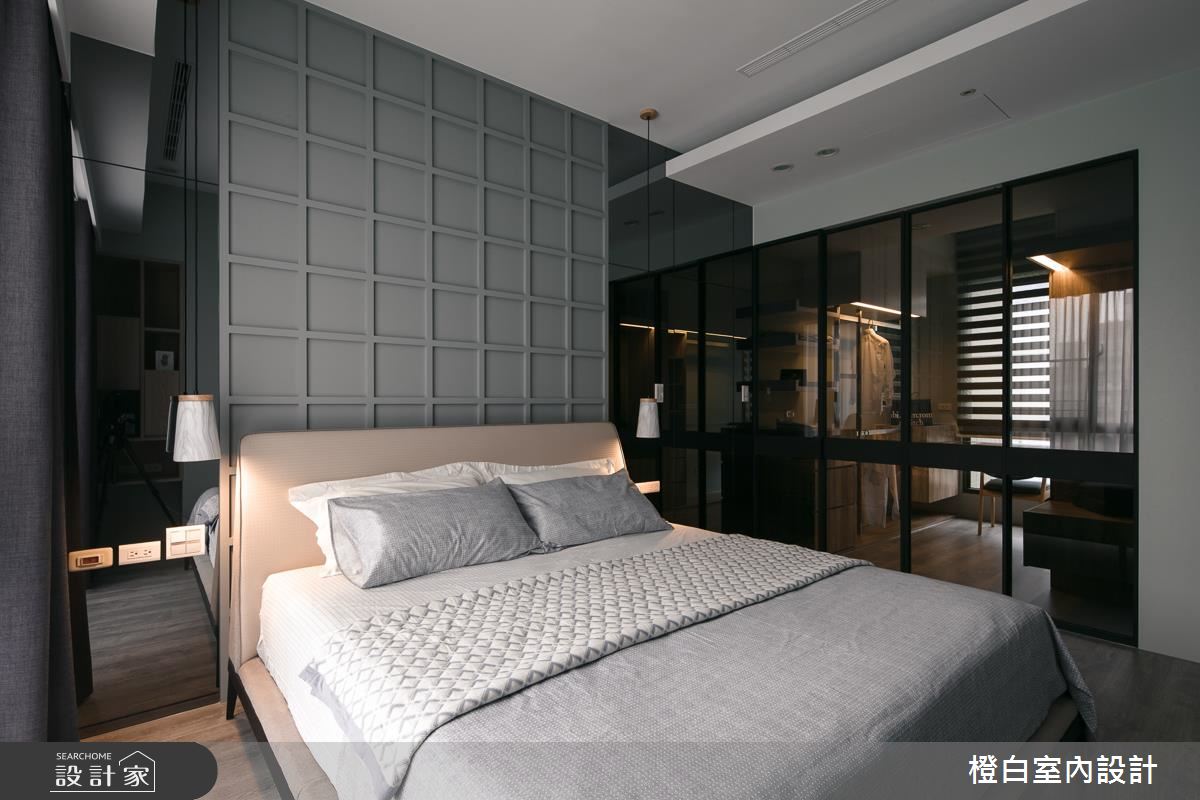 主臥內利用玻璃與鐵件建構隔間,串起臥眠與更衣室之間的交流,形成空間放大之感,更衣室內部則規劃強效的收納機能,並保有不侷促的空間感,令人眼睛為之一亮!
