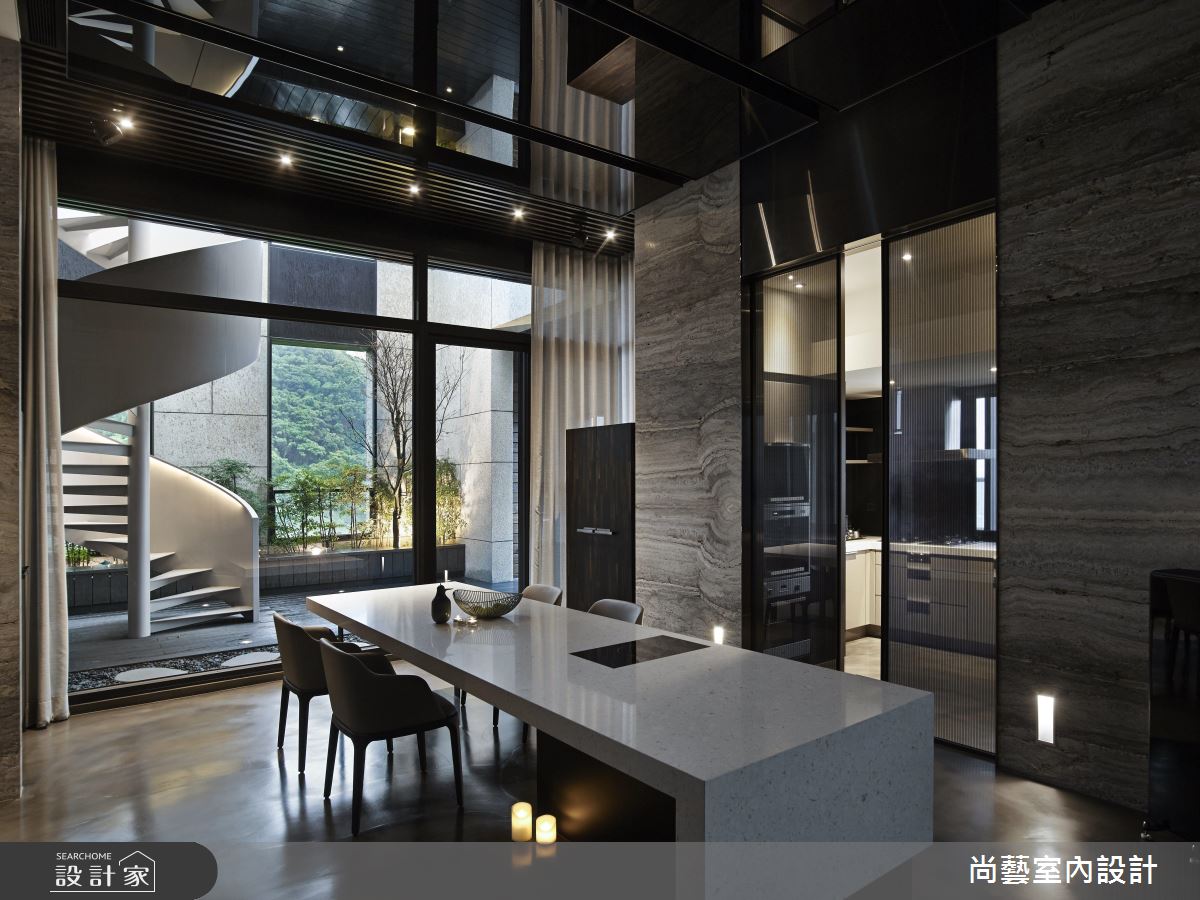 設計師採以石材建構吧檯,搭襯落地窗景配襯,將綠意景色作為絕佳裝飾,凝聚出紓壓的生活氛圍!