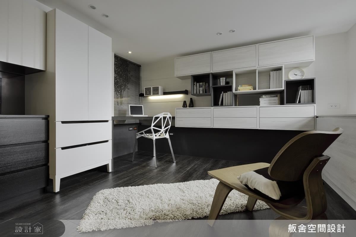 作為書房與客房使用的空間,設計師考量未來的變因,保留更多餘裕,不施作過多的櫃體,讓居住者能保有收納的功能外,也讓未來可彈性應用。再者,設計師在每個櫃體設計都刻意以黑白色調收邊或增加反差,以此延伸深邃的視覺效果,更豐富了立面層次。