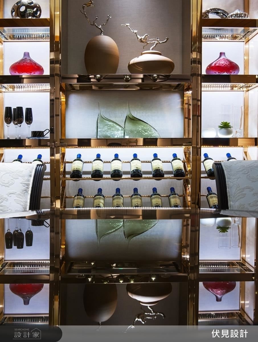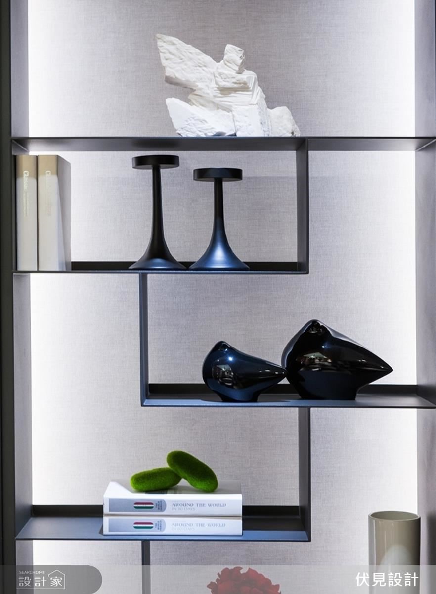 生活極有品味的男主人,收藏了許多東方特色的藝術品,而且造型別致優雅。設計師保有客廳的簡潔俐落,將展示收納櫃與酒櫃全部設置在餐廚區,招待朋友用餐時可以欣賞他的私人珍藏,滿足視覺與味覺的雙重享受,一方面需要開酒暢飲也十分方便。