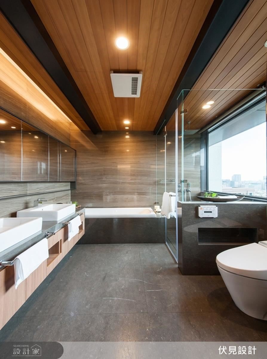 由於屋主因為工作經常出國洽談生意,在作息上希望享有西式生活的獨立與舒適,因此特別打造雙水槽與乾濕分離設備,並配置大浴缸,可以悠閒佐綠意泡澡賞景,最能紓解一身的疲憊。