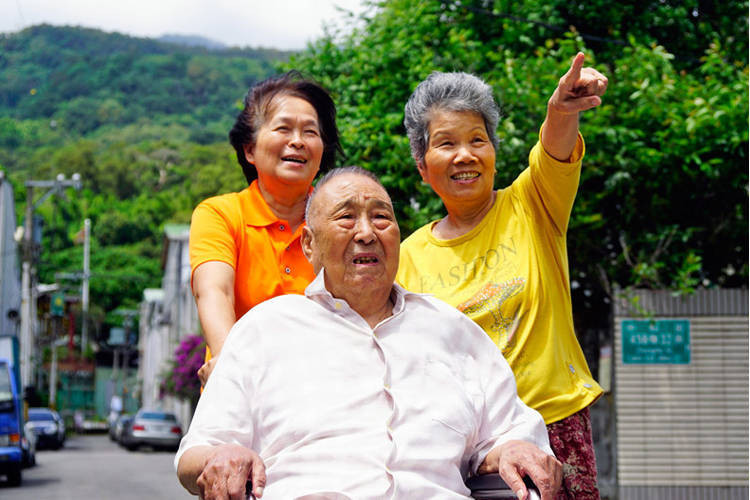 初夏的午後,和煦的陽光灑下,台北市北投中和街,85歲的戴伯伯一小步一小步賣力往前踏,一旁有位中年女子攙扶著他,亦步亦趨跟在他們身後的是推著輪椅的戴媽媽。