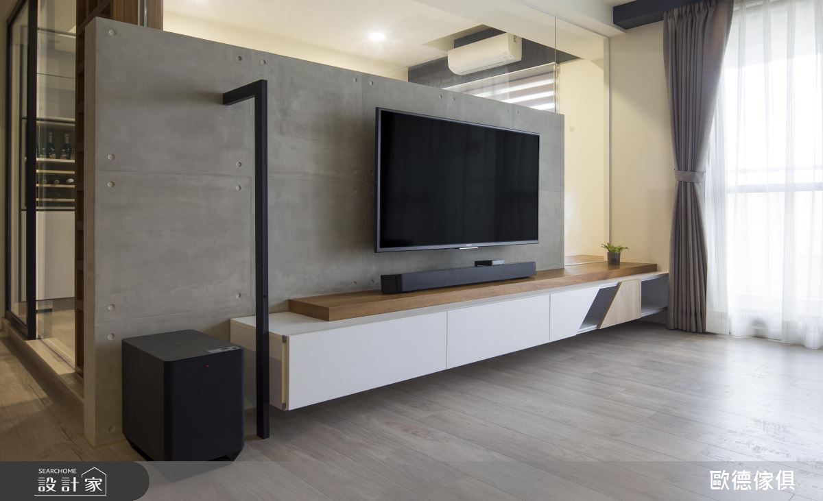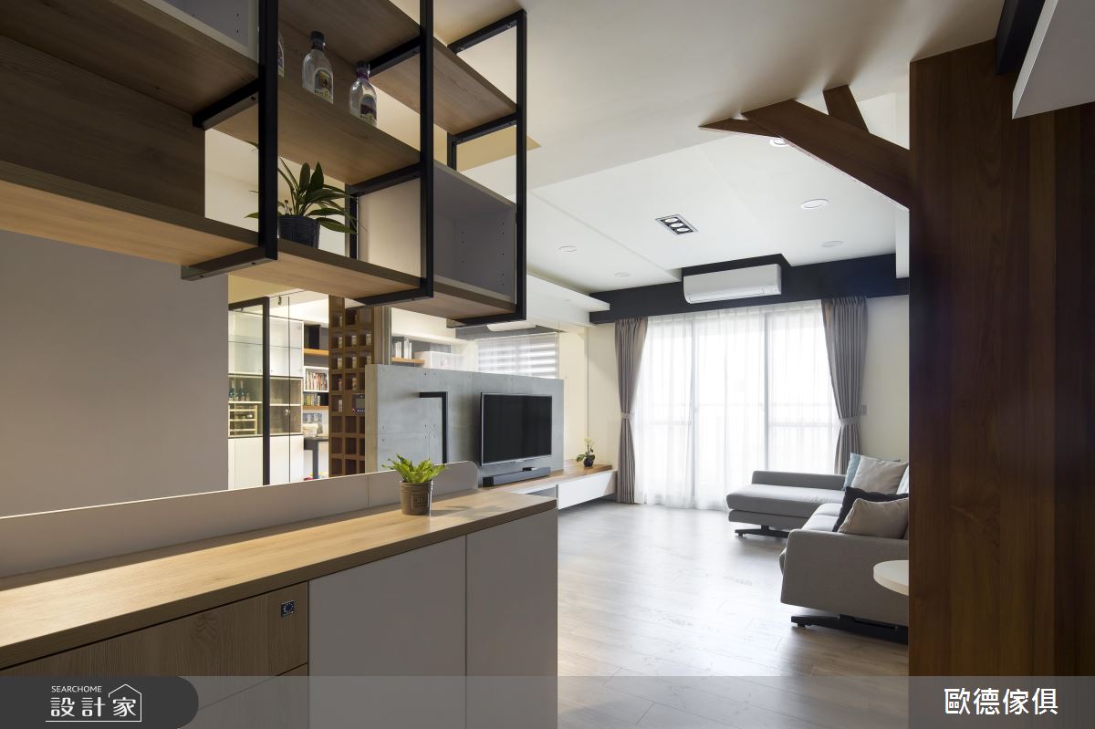 以 Loft風定義的單層住宅,運用樂土營造出清水模般的簡樸人文質感,輔以大量的木質元素,如木地板、櫃體,以及文化石,描摹出屬於小家庭的溫馨、溫潤感受。格局的配置上,以開放式設計搭配玻璃材質,創造最大的開闊度與通透感,寬敞的公共空間,方便夫妻兩人照顧孩子,也是一家 3 口共享天倫之樂的書市場域。設計師也善用零碎的空間角落,像是書房側牆、房間臥榻、兒童房架高的木地板下方等,賦予大量收納設計,讓坪效的使用得以提升至最大化,打造實用且舒適的小家庭空間。