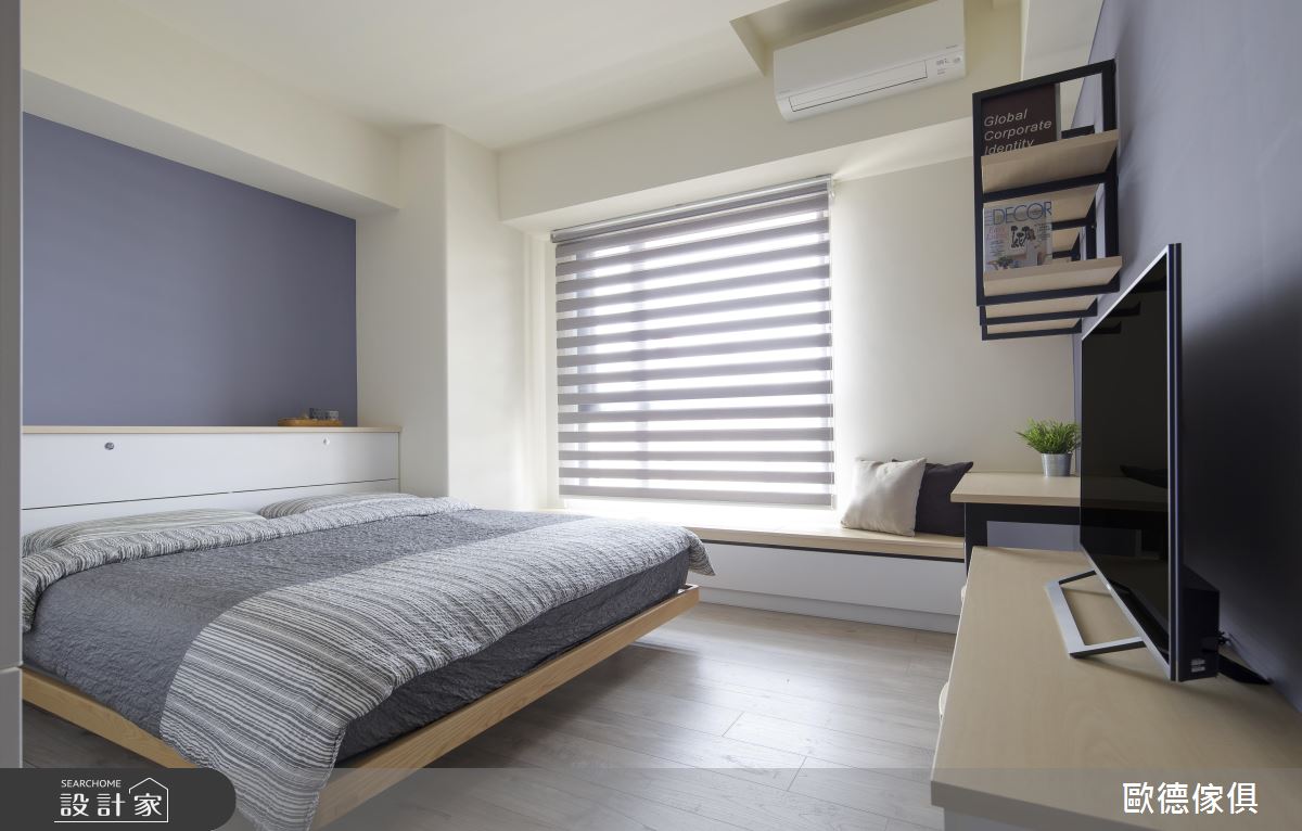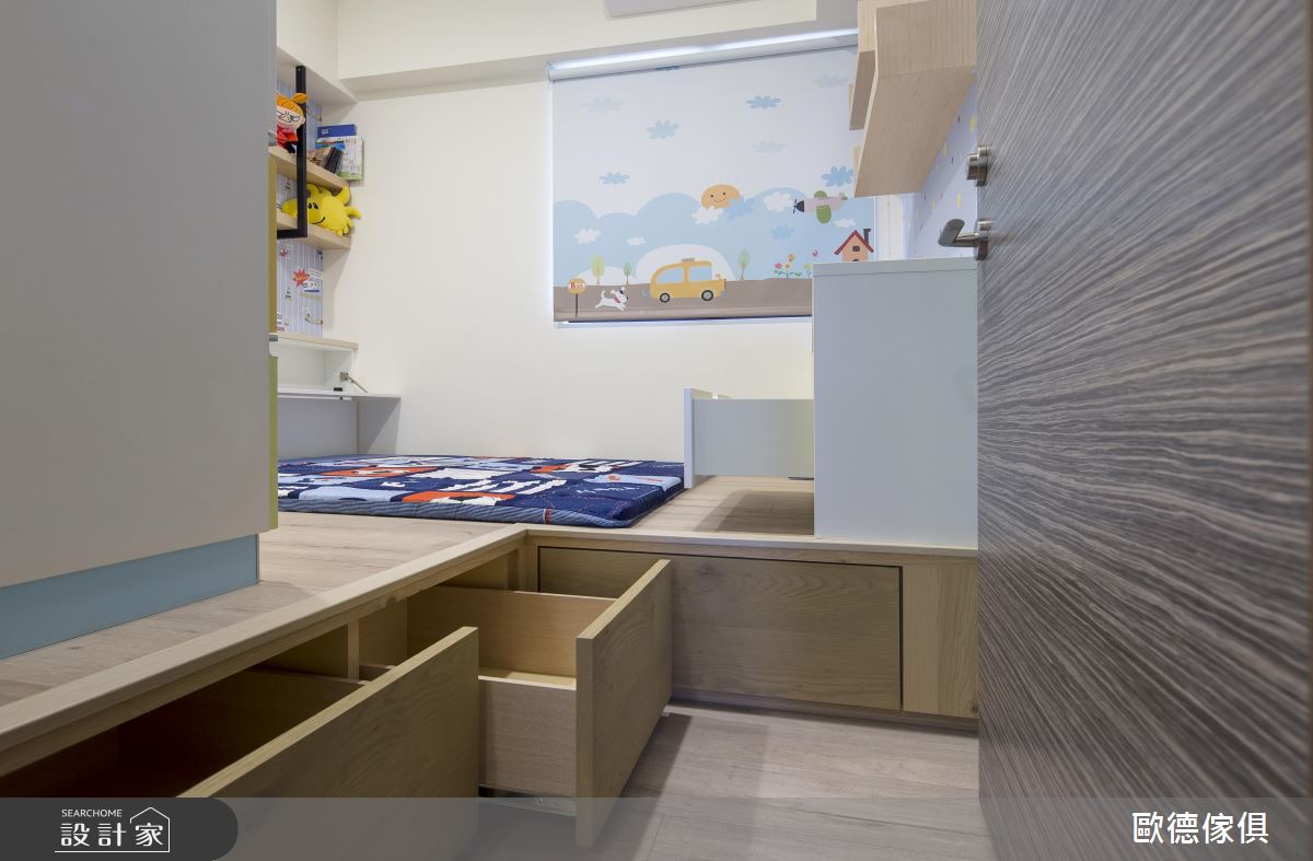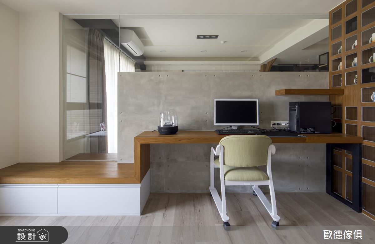 電視牆後的大書房,富含充足的收納機能,也兼具了工作上網、閱讀,以及臥榻休憩的功能性,更是一家 3 口可以快樂互動的團聚空間。