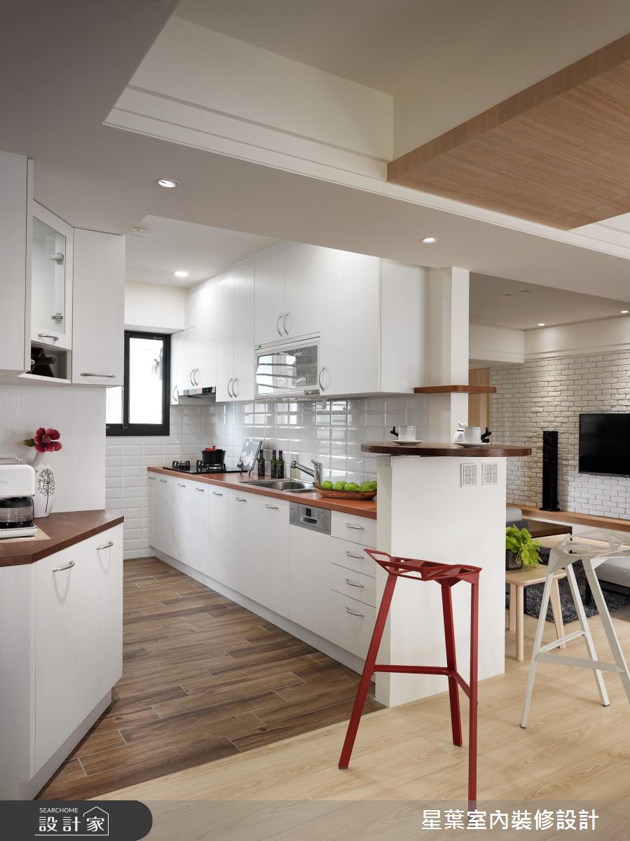 考量到女婿喜愛喝咖啡,特地在廚房矮檯旁配置吧檯旋轉桌,透過彈性開闔的設計,以及不影響動線的絕佳位置,讓小倆口可在此喝咖啡、賞夕陽,浪漫度過每一日!