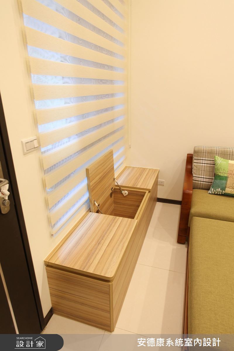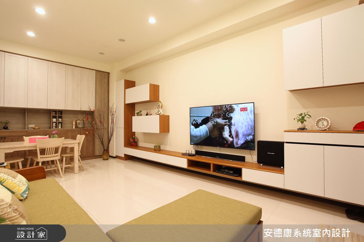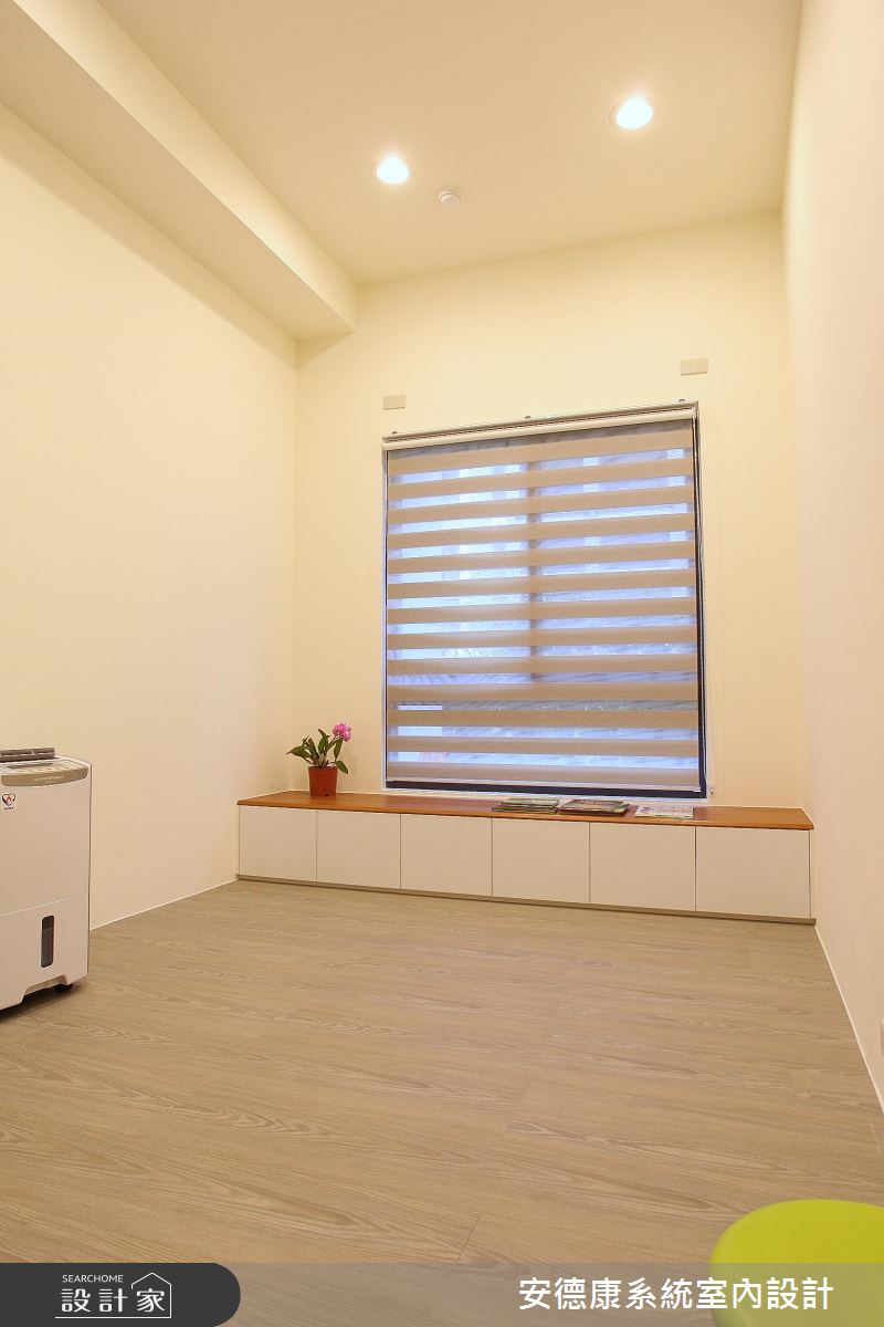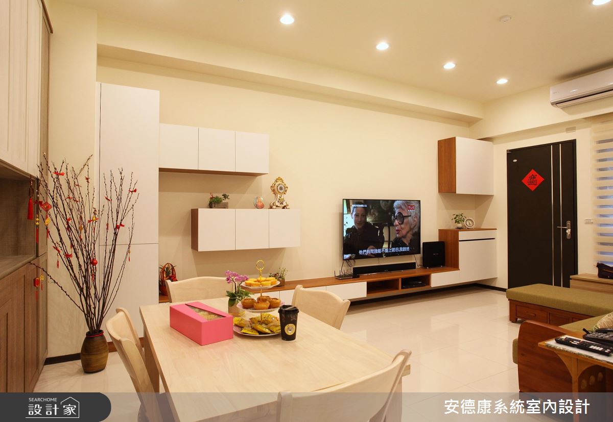 為了迎接屋主假日閒暇之餘,會有家庭聚會或是好友拜訪,容易維持整齊與方便整理成為室內重點,因此特別利用系統櫃加強收納機能,營造高度舒適、自在的互動空間,像是屋主的收藏或綠意植栽可陳列於櫃體上,錯落有致的櫃體高度替電視牆增添活潑度;為了創造出自然無壓的生活氣息,透過大量的木紋板材的鋪陳,搭以彈性的活動式家具,調和出休閒、愜意的居家氛圍;客廳的窗邊設置一座臥榻區,可欣賞戶外庭院的景致,同時擴充客廳的座位數量,滿足一家人悠閒的度假時光;利用大樑下的畸零空間,設置整排餐邊櫃,滿足餐廳區的收納需求,中央結合展示機能,呼應生活美學的人文態度,隨著物件的擺設更替,輕灑創意靈感。