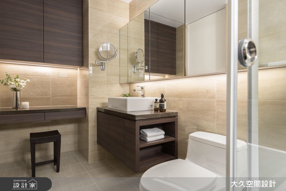 衛浴除了基礎的乾濕分離功能之外,也運用櫃體搞定備品收納,尤其增設的桌面平檯與座椅,更添注使用上的便利性,使浴室機能更為人性化!