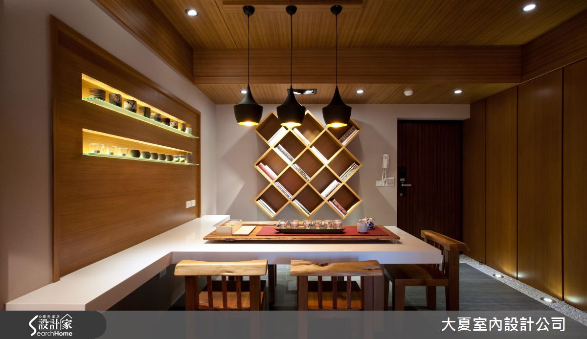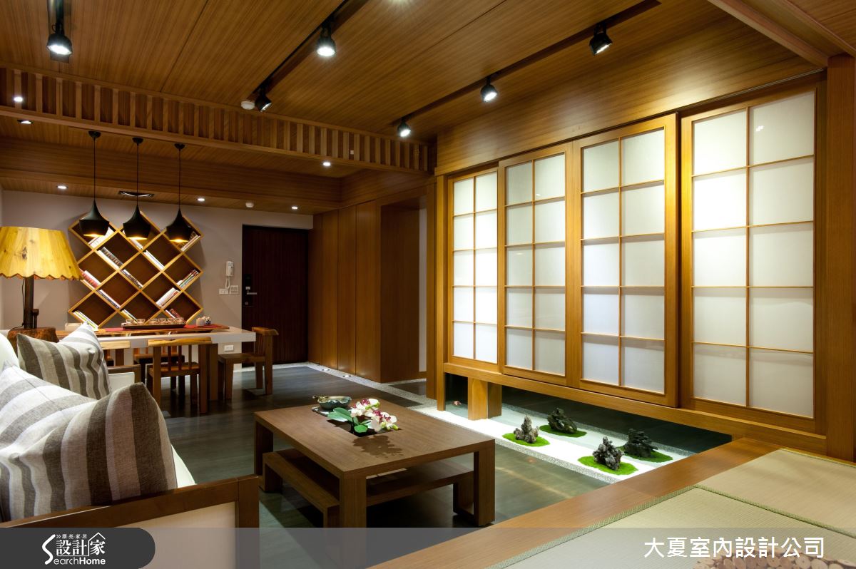 藉由大量的木紋質材,暈黃意境的內嵌光源,加上榻榻米、格柵與茶具展示的和風元素,調和出安定、靜謐的禪風雅居,滿足一家三口的嚮往的日系文化生活。