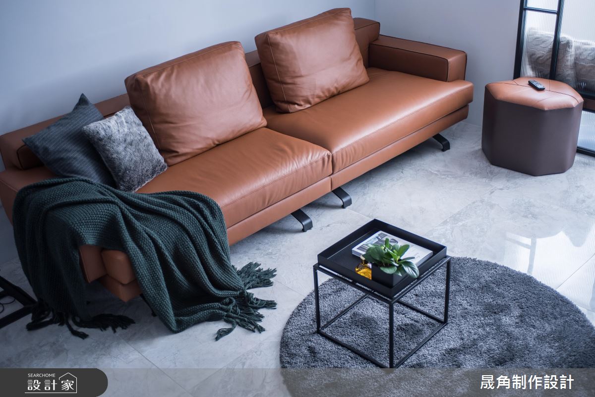 客廳區,藉著鐵件、清玻璃搭構的界定隔間,將客廳領域瞬間外擴,不僅拉闊空間視野,更增添了格局層次,餐廚旁亦運用相同建材,串起用餐地帶與後方陽台的關係,讓全室的採光、空氣得以串聯,達成光線引渡的效果,並運用白色為底,搭上深藍色塊面的點綴,坐擁令人驚豔的色彩張力,而充滿著復古情懷的沙發座椅,則與趣味掛畫相互呼應,構成賞心悅目的風景;寢臥內,引用了簡約的建材,透過天然感的木作、略帶粗糙的壁材、柔和不搶睛的光氛等,讓空間顯得簡單舒適,型構備感自在的私領域情境!