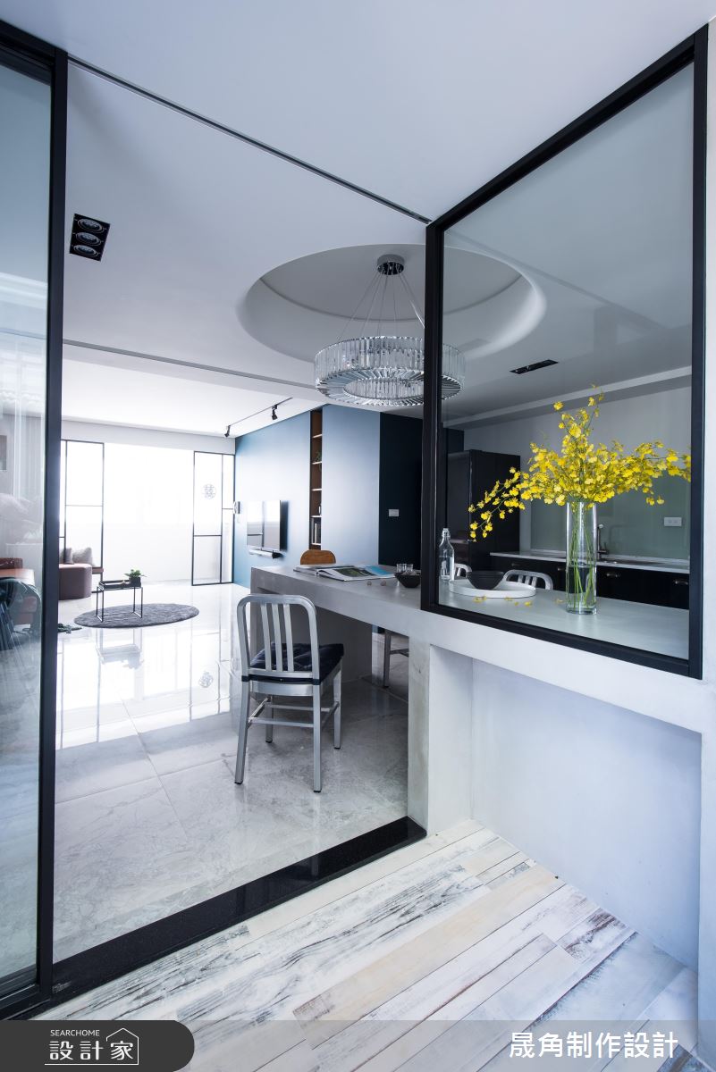 28 坪老屋,設計師透過現代風格的重整,再藉由通透隔間處理,將餐廳、陽台與廳區加以串聯,挹注明亮美好的採光效應,搭配著深藍及淺白的對比交織,營造出年輕時尚的生活氣場,快跟著小編一起來看看吧!
