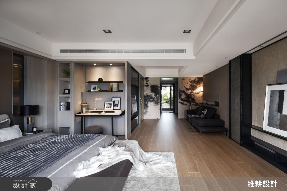 臥房的起居地帶,透過充滿戲劇張力的壁材表現,帶出行雲流水的潑墨紋理,瞬間讓牆面變得精彩不凡,達到轉換空間氣度的作用!
