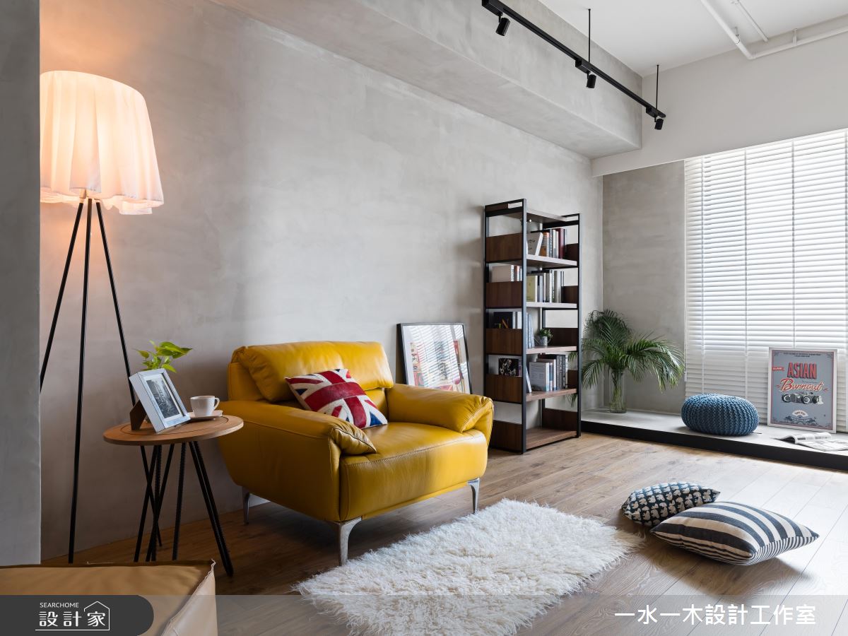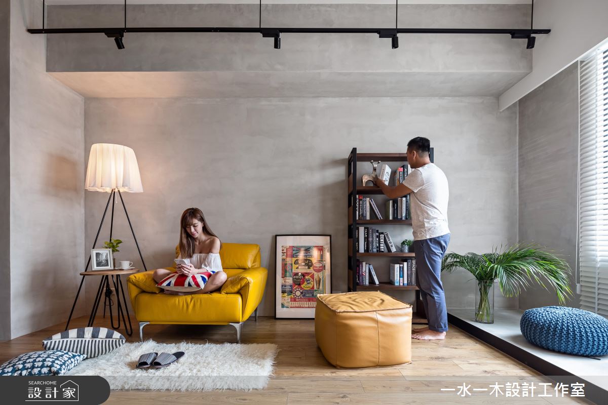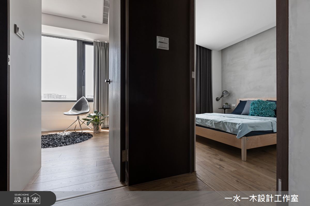 設計團隊重新調整格局配置,全室以開放式設計串連客廳與餐廚空間,玄關僅以水泥與木質地坪材質做出區分。保留天化原始高度與樑柱,並順應軸線鋪設木地板,達到空間放大、視覺延伸的目的。電視牆結合收納櫃,並以樺木夾板點綴,為輕工業風格注入暖意,客廳採移動式家具隨時根據需求轉換樣貌,臨窗特意微高起的臥榻向後方廚房延伸並兼具地坪機能。開放餐廚中間以吧台結合餐桌,創造多元用度,並將廚房延窗設置,讓烹飪時光佐以明麗窗景。 L 型空間底部為私領域空間,設計師貼心設計左側房間,可規劃為多元應用的兒童房。