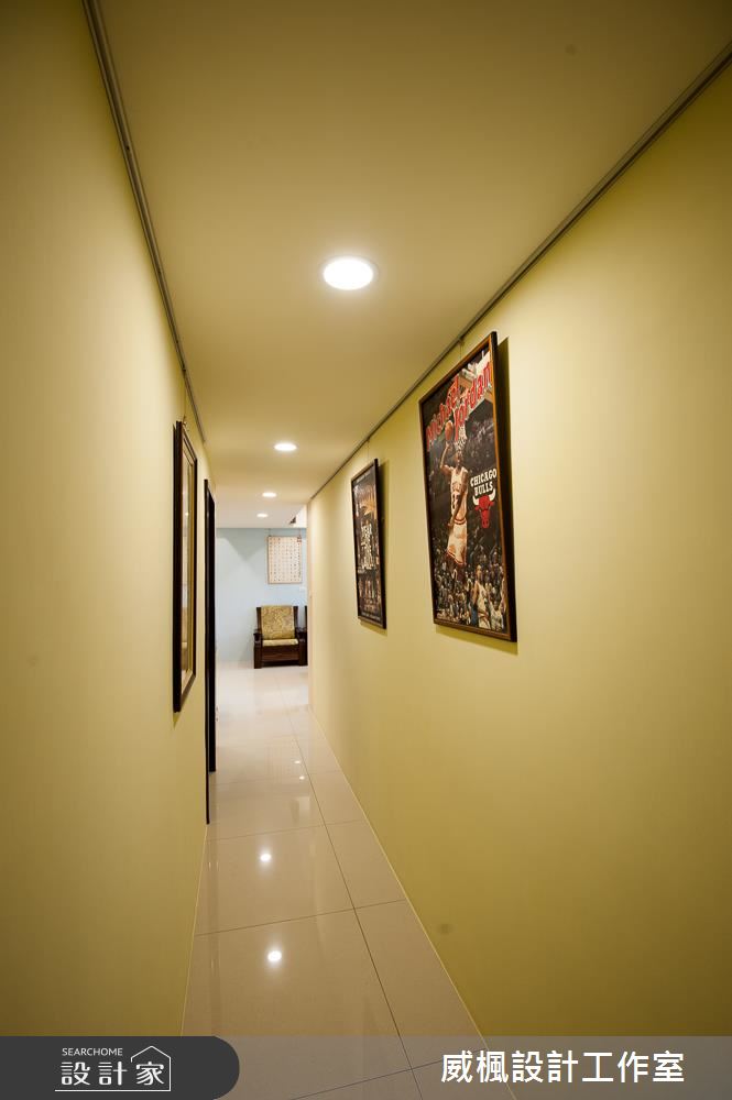 設計師善用家族成員的收藏物,將其妝點於空間之中,以海報、字畫串聯廊道,不只形成趣味表情,更凝聚了家的情感與溫度!