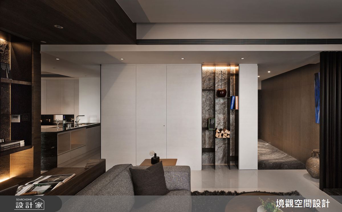 設計師在與本案屋主合作時,看見屋主性格中的內斂鋒芒,以東漢文學家崔瑗座右銘「在涅貴不緇,曖曖內含光」為主題,打造充滿人文氣息的 28 坪居宅。