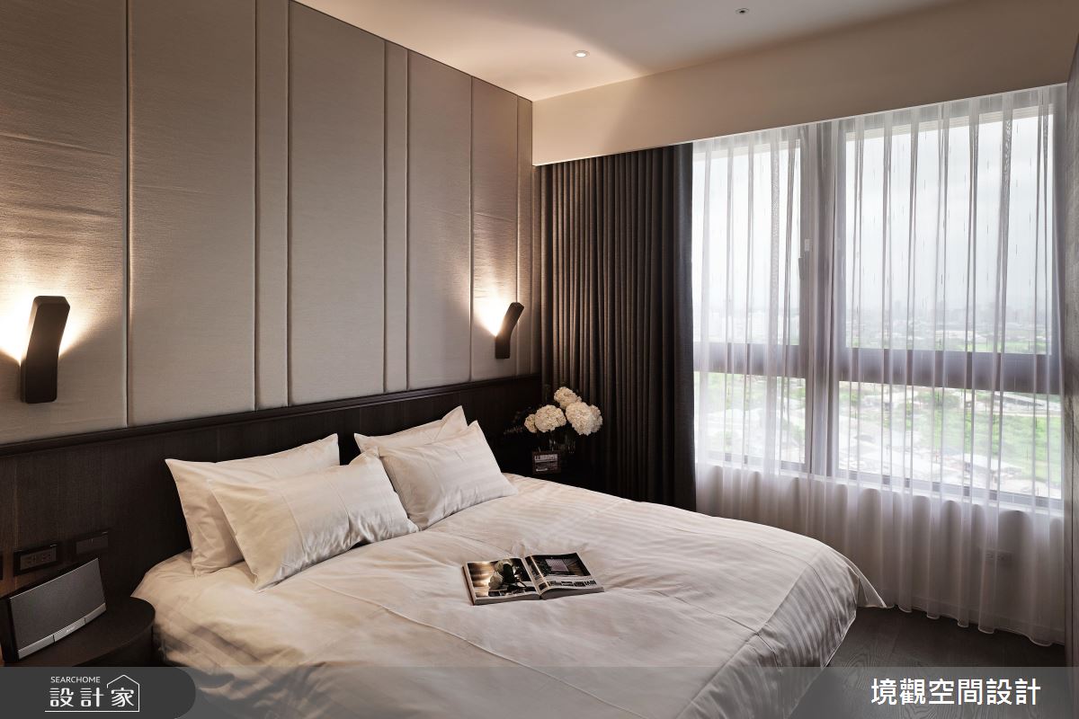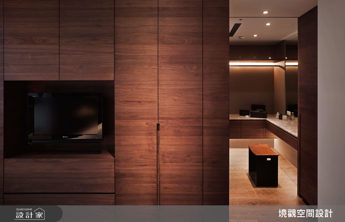 主臥精於動線安排,將更衣間功能隱於電視牆後方,同時利用繃布、木元素材質,為睡眠空間創造富有人文質性的空間。