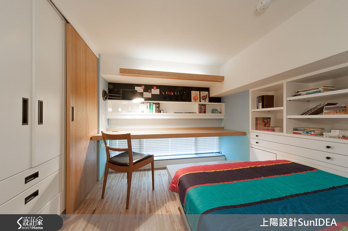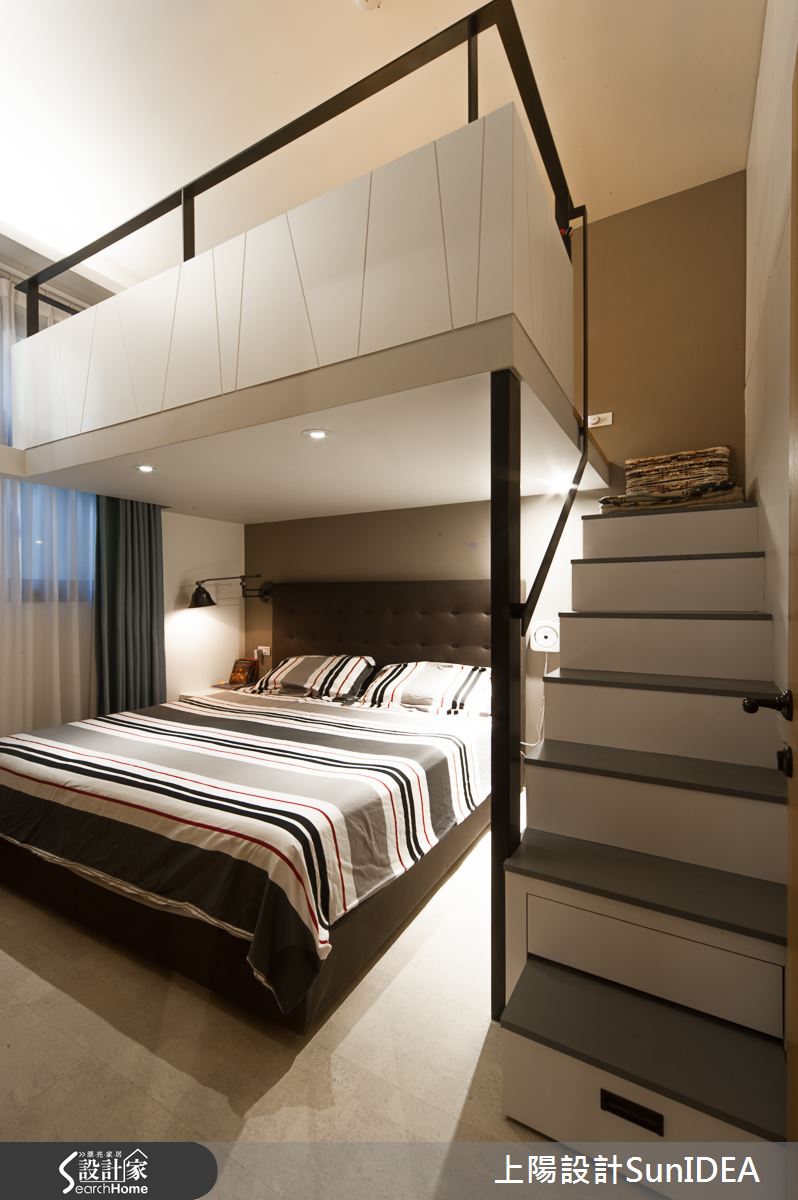 次臥雖位於小夾層內,但在設計上也不遑多讓,透過櫃體的聰明規劃、畸零地帶的妥善運用,使房間空間雖小但五臟俱全,呈現小而美、實用性的寢居視野!