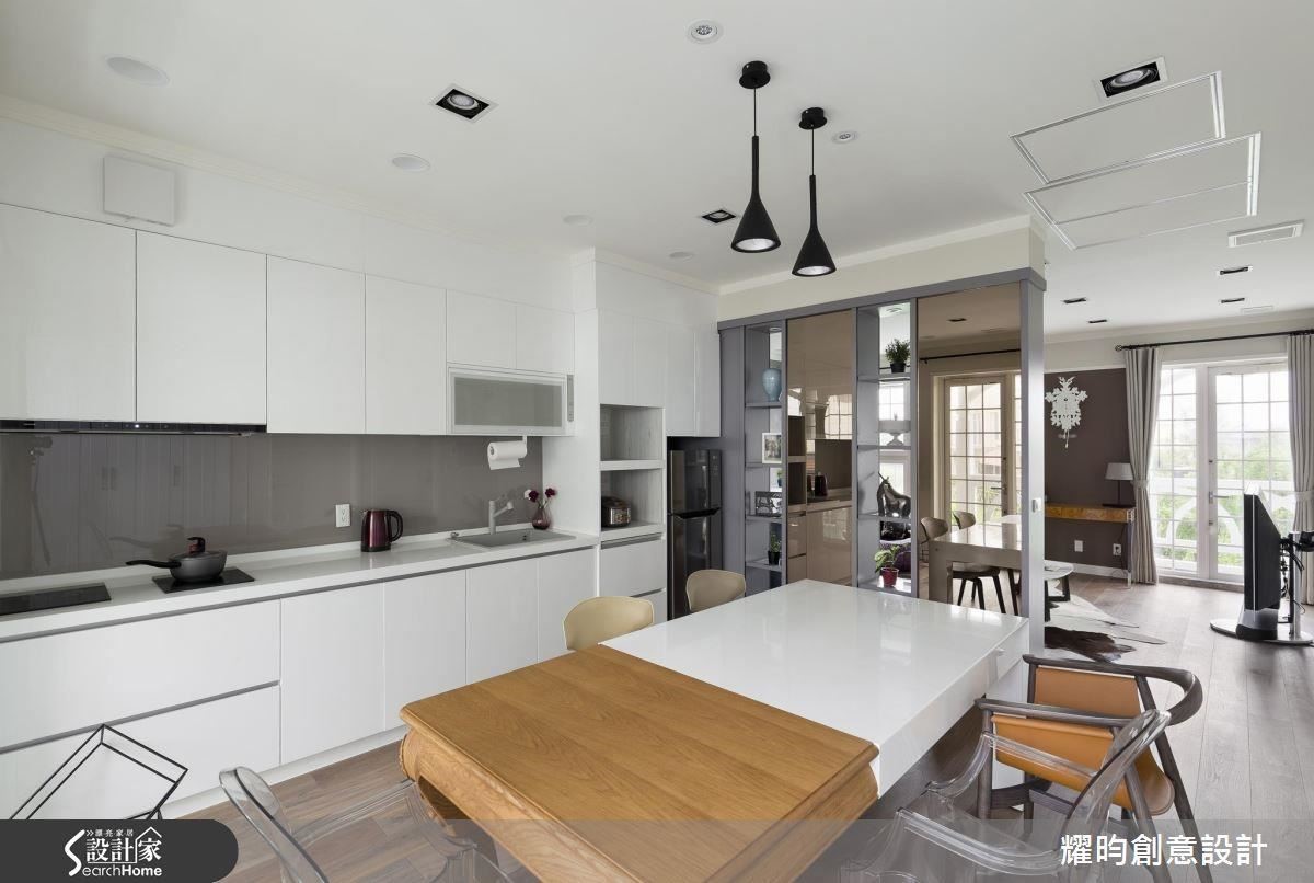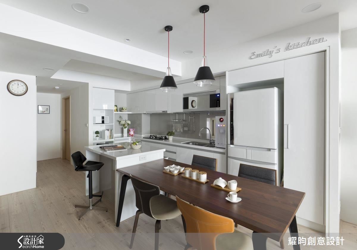 當客餐廚空間合一,視覺景深也跟著拉長,把全家人的生活重心聚集在此,也不嫌擁擠。最重要的是,不管小孩在客廳玩耍,或是在餐桌寫作業,爸媽都能隨時照看,凝聚溫馨的居家氛圍。