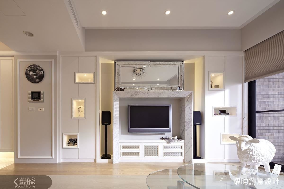 想有時尚華麗的豪宅質感,用一道牆面就能達成目的。將牆面以壁爐意象美化,藉由大理石材包覆,再以屋主珍藏的威尼斯鏡及精品,或是紀念小物和家人合照加以妝點,讓家憑添一絲歐式風情,也展現了個人品味。