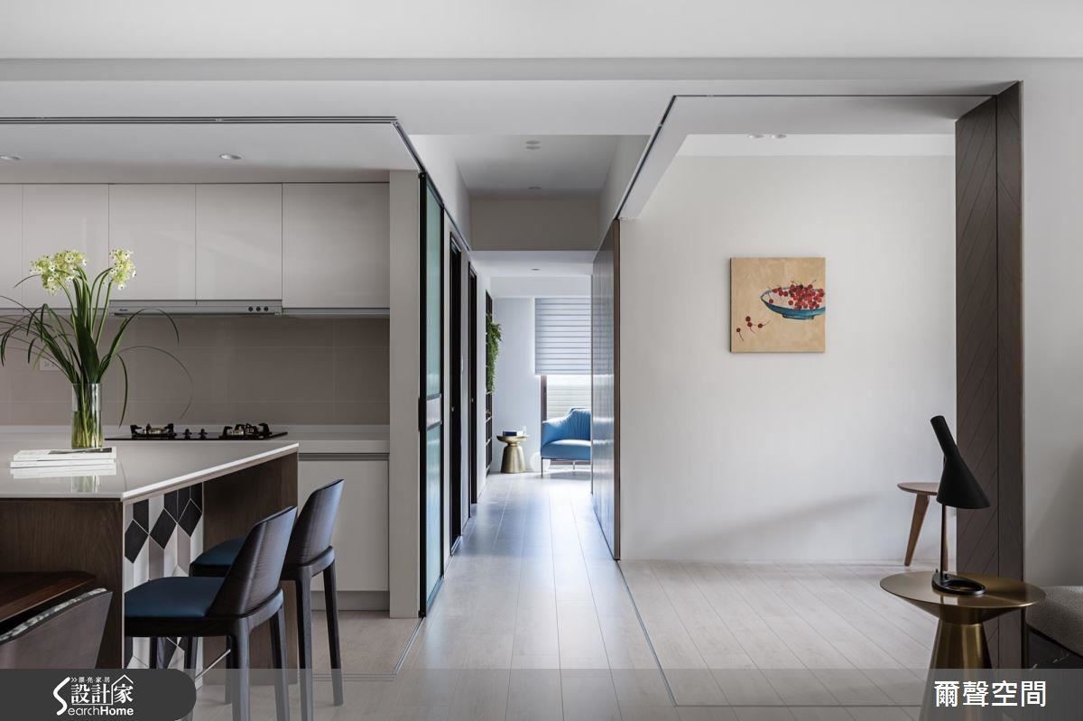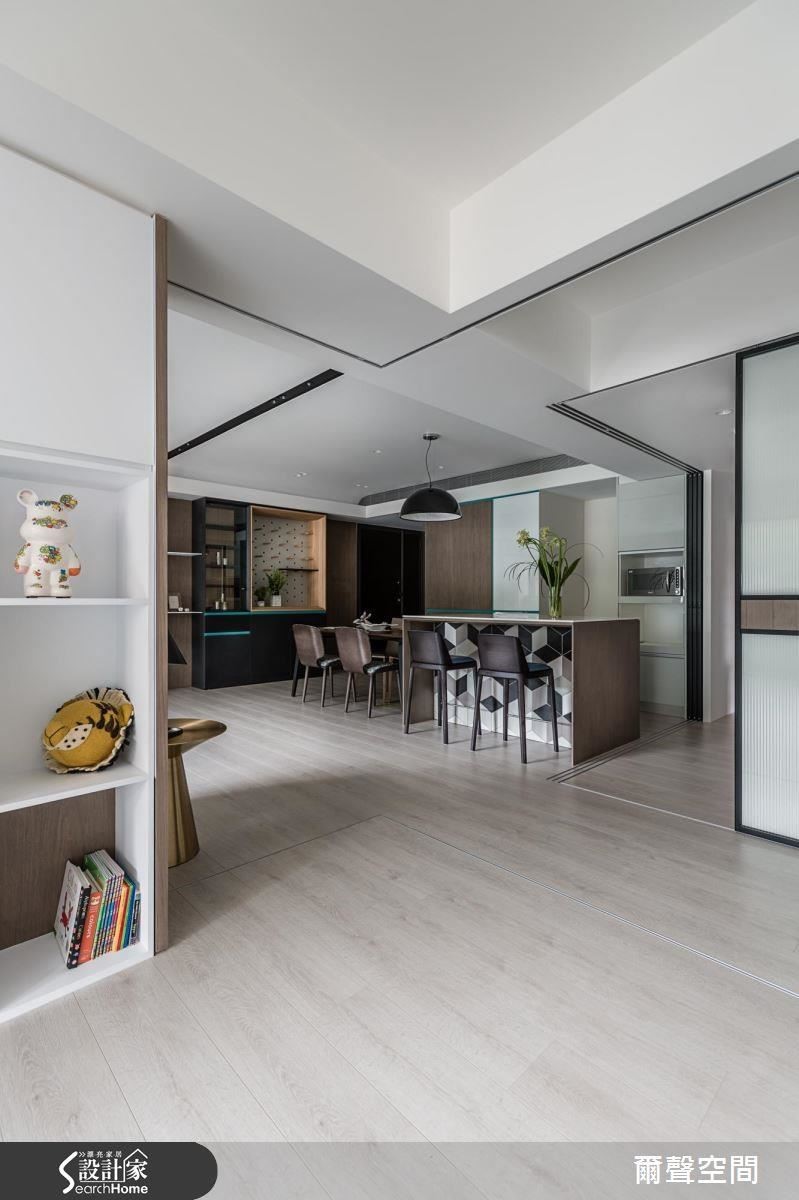 雖然實際只有 38 坪,這個家的機能卻大得宛如豪宅:爸爸可以和小朋友一起練習投球,客廳就是迷你運動場;大人可以呼朋引伴來做客,小孩能開著小車到處轉,連貓咪也有自在的活動空間,客廳又成為最佳的休閒場所。爾聲空間設計的陳榮聲 Edwin Chen、林欣璇 Linda Lin 兩位設計師,善用拉門設計,把家變成各年齡層都能共享的彈性空間,即使十年後小孩長大,都一樣住得舒適無礙。
