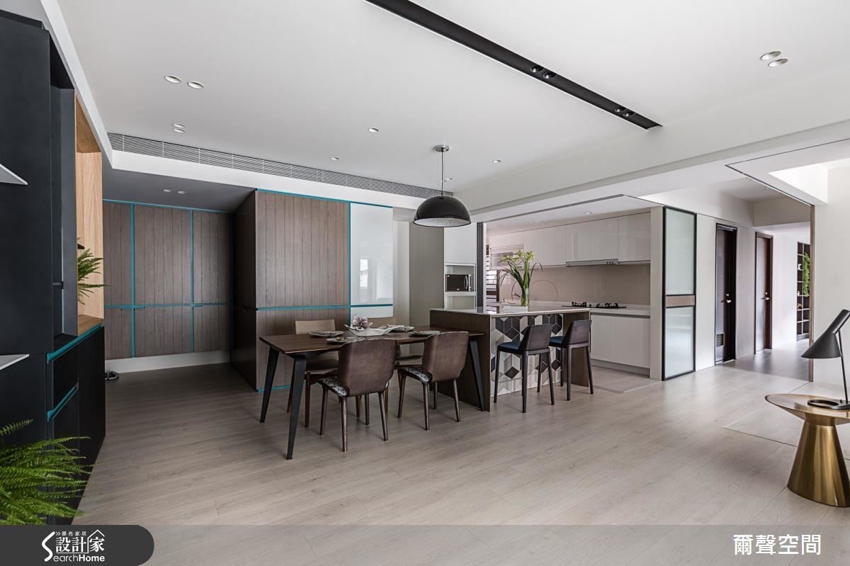 廚房以拉門區隔,兩側的門片正好可以收入牆面與電器櫃旁的細縫中,餐廳則以中島銜接餐桌,招待客人時,開放空間更適合交流,朋友來訪的機會也真的變多了。而屋主極重視的收納,則是利用餐廳旁的畸零區打造儲藏室,取代過多櫃體,內有環繞式層板,可以放置雜物及嬰兒車,讓空間更為簡單清爽。