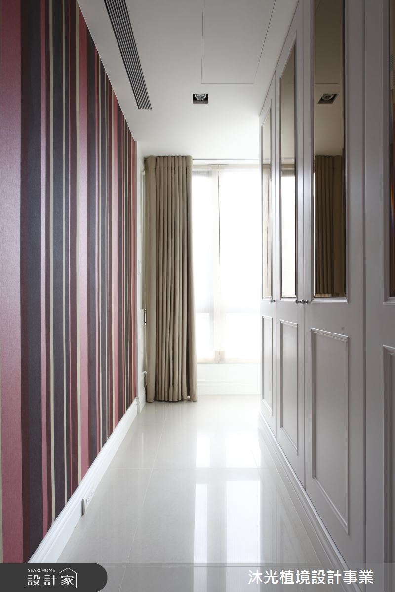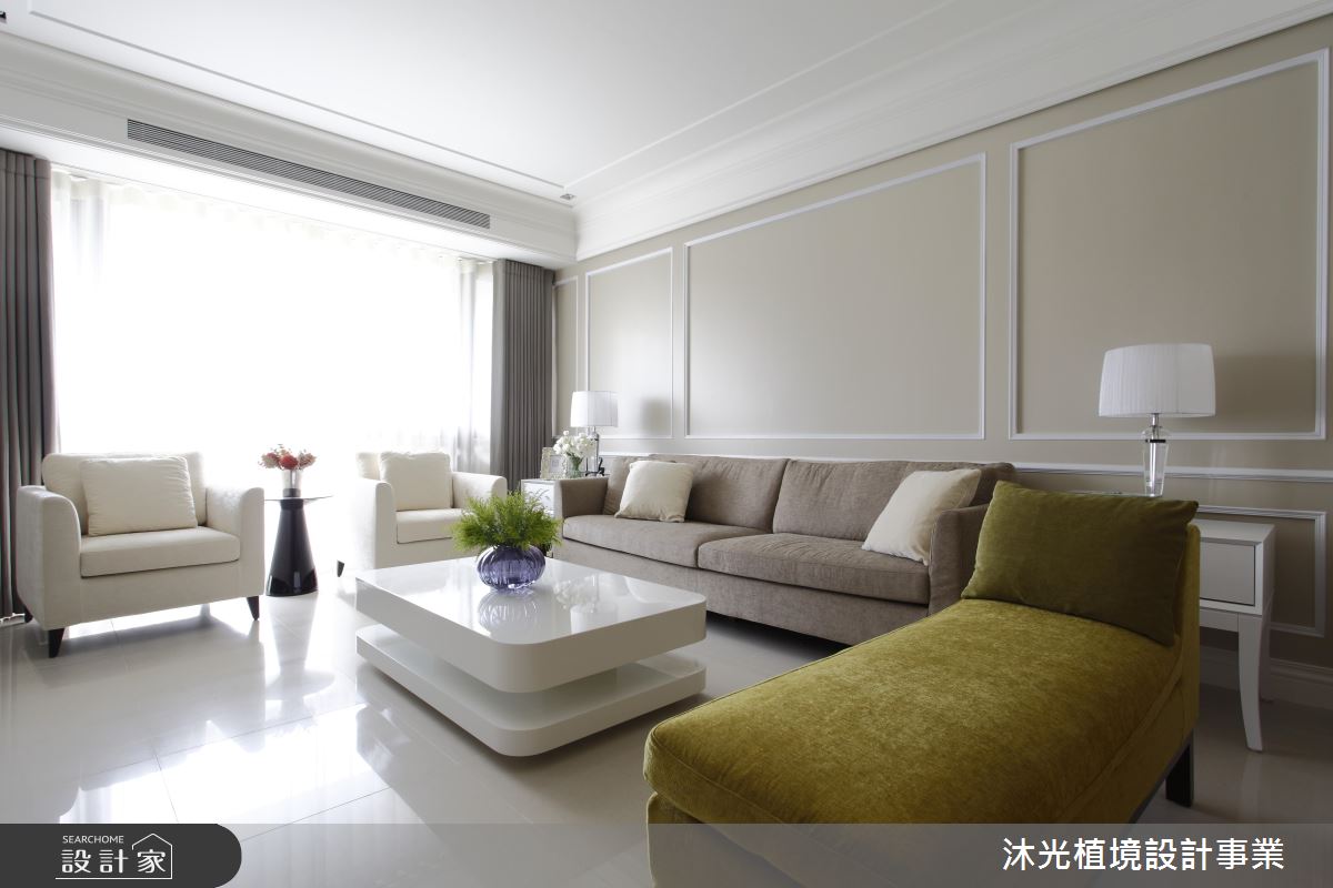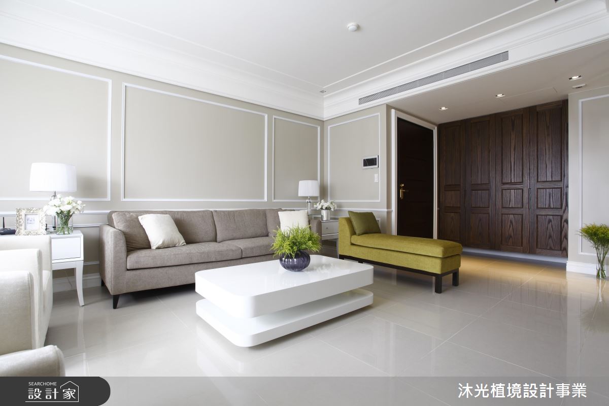 簡潔、明亮的 34 坪美式風住宅,為新婚夫妻與長輩的新家,設計師以靜雅的暖色調為基底,搭配鮮亮的臥榻沙發色彩,呼應了窗外陽光的清新和透亮感,搭配對稱典雅的線板設計,更完美發揮了美式風格的優雅涵性。