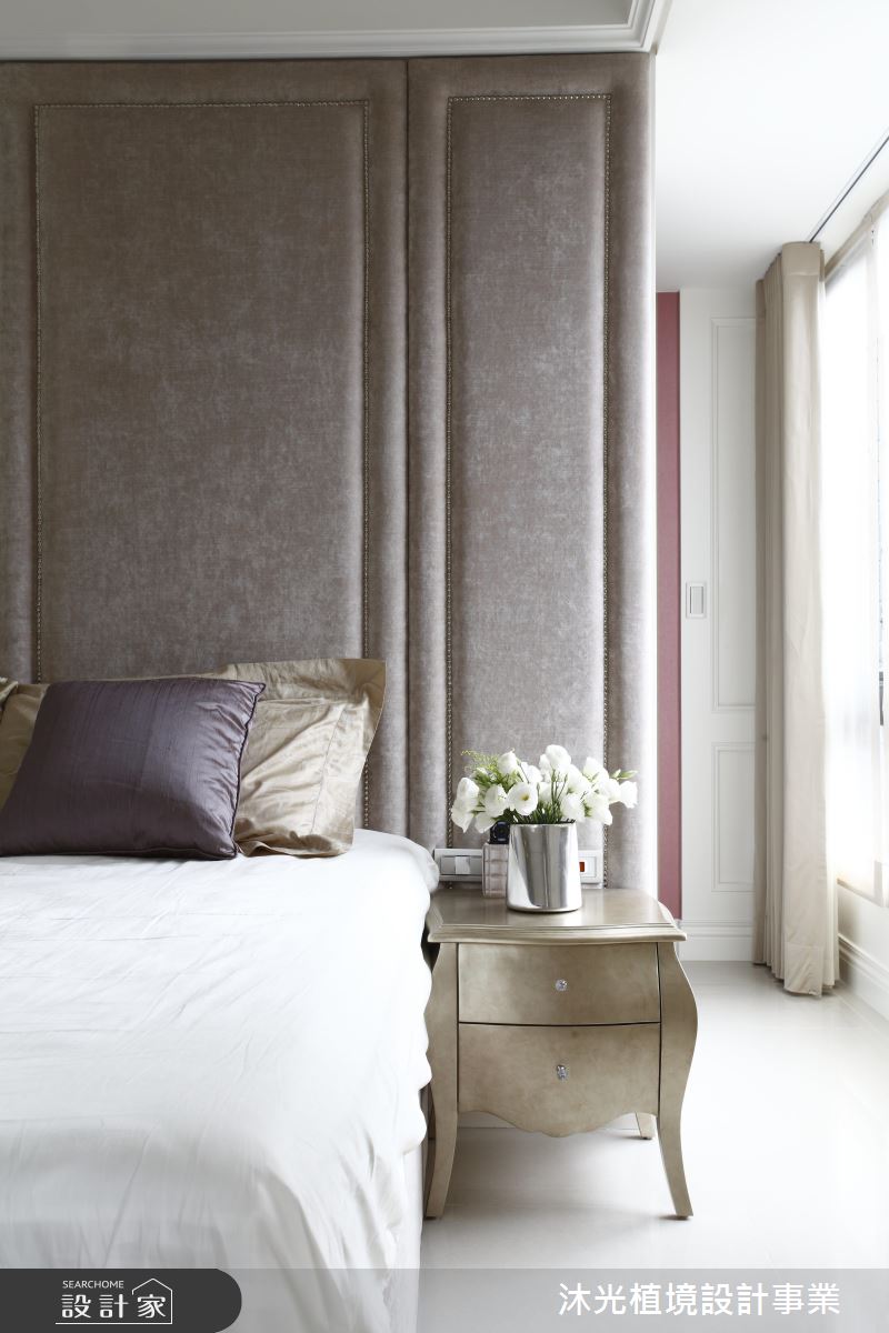 走進這處居所,客廳利用大幅的電視牆比例,徹底拉開了視覺上的寬闊感,主沙發為中性的大地色,為空間帶來沉穩、舒適的主調性,兩側分別為純白的單人椅與芥黃色的臥榻沙發,圍塑出客廳領域的範疇。採用鏡面材質的門片、璀璨的吊燈等元素,讓餐廳處呈現精緻、優雅的調性,餐廳底端則是擁有豐富藏酒的酒櫃,櫃體內嵌入燈光,低調中也隱現高級的質感。臥室運用繃布與釘扣造型,搭配壁紙紋樣、天花板處的線板設計,營造出宛如歐式宮廷的細緻華麗感。