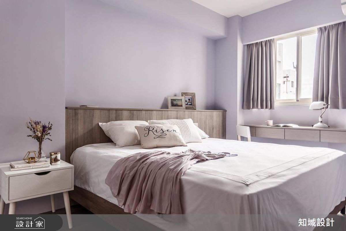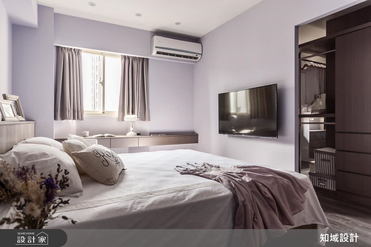 主臥刷上浪漫的淡紫色調,創造舒緩的睡眠空間,更結合書房機能與獨立更衣間,讓換裝時刻更加從容優雅。