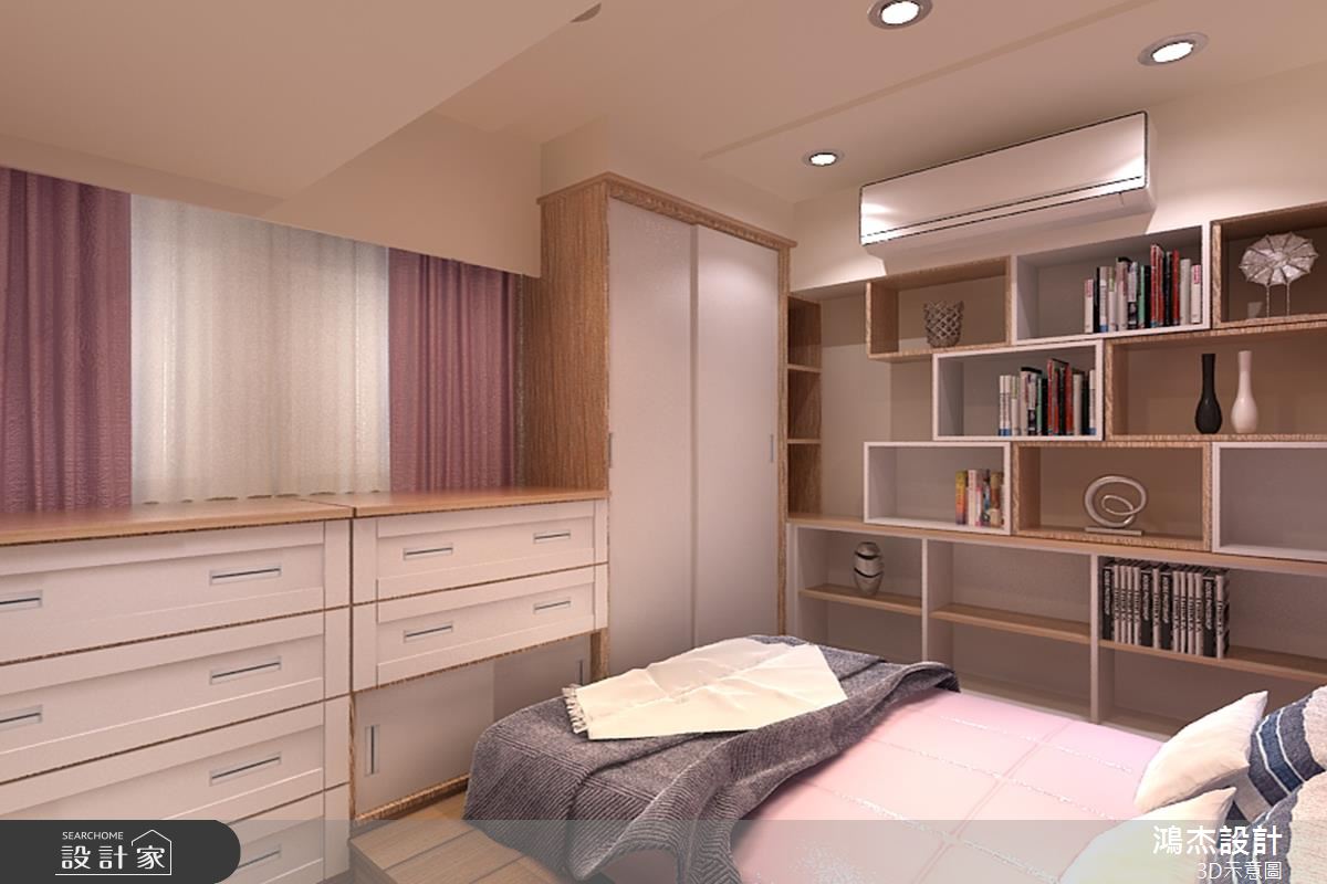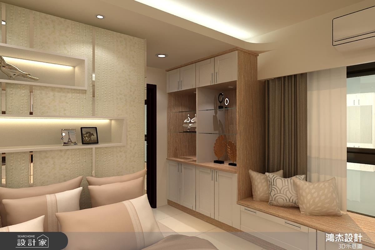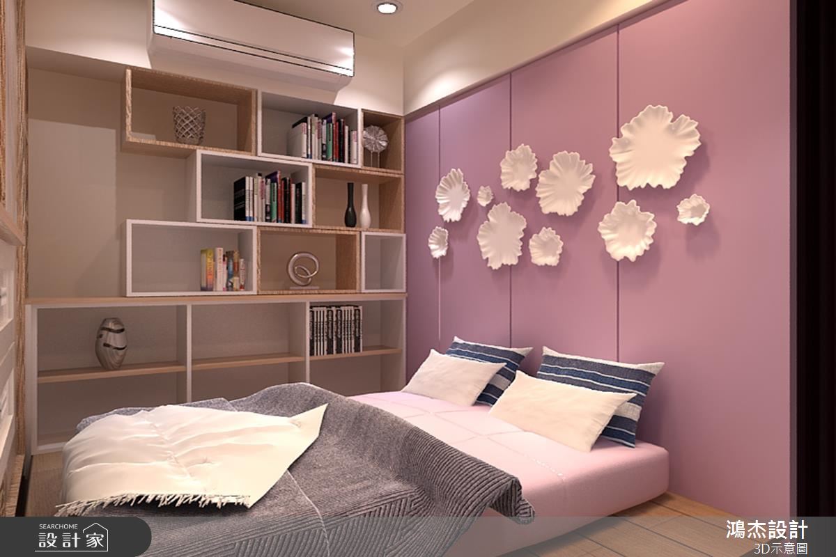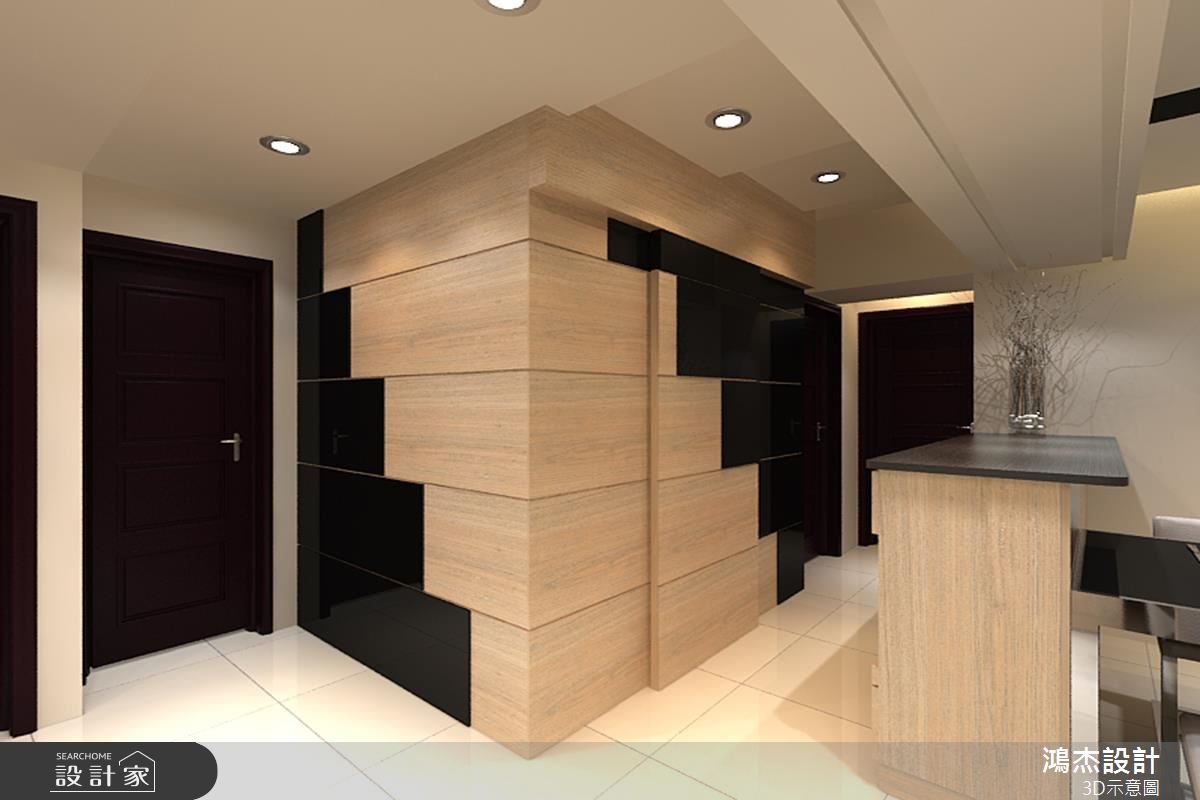 簡約感的現代風遊走在空間裡,以黑白色系為基底,並藉由原木質感的元素予以妝點,展現動人的溫馨情誼。旋開大門步入玄關,系統櫃打造整面鞋櫃造型,中央飾以開放的展示機能,打造美感與實用兼具的設計;玄關處藉由玻璃與鐵件創造隔屏,巧妙劃分內外領域,透視的材質特色,讓空間得以更加延伸、寬敞;開放的公領域裡,客、餐廳相容一室,電視牆結合收納、展示機能,增添活潑的設計美感;客廳後方則以架高木底板創造書房領域,大面積書櫃可容納豐富藏書,臨窗臥榻區滿足悠閒的美好時光;餐廳的壁面結合藝術質感的畫作妝點,挹注美學色彩,後方設以一座中島,讓好友相聚時可盡情暢飲,在通往私領域的轉角壁面,則利用墨鏡與木作堆疊,呈現階梯式漸層造型之美。