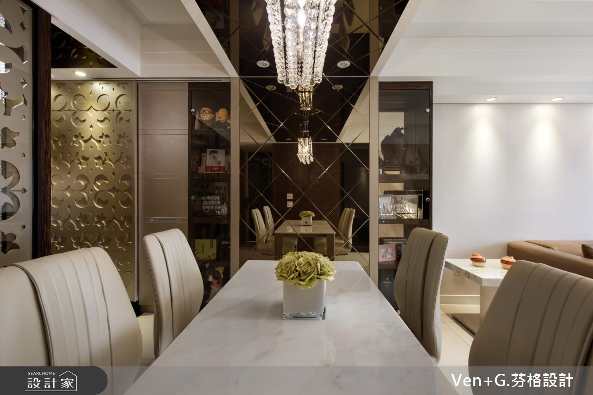 誰說奢華風格只能存於大坪數宅邸,芬格空間設計在僅23坪的空間裡,延續絕佳的採光優勢,透過金屬噴漆、玻璃鏡面以及水晶燈創造華美大器之姿,透亮的質材活用,替小格局坪數創造放大、寬敞之意,令人驚艷不已!