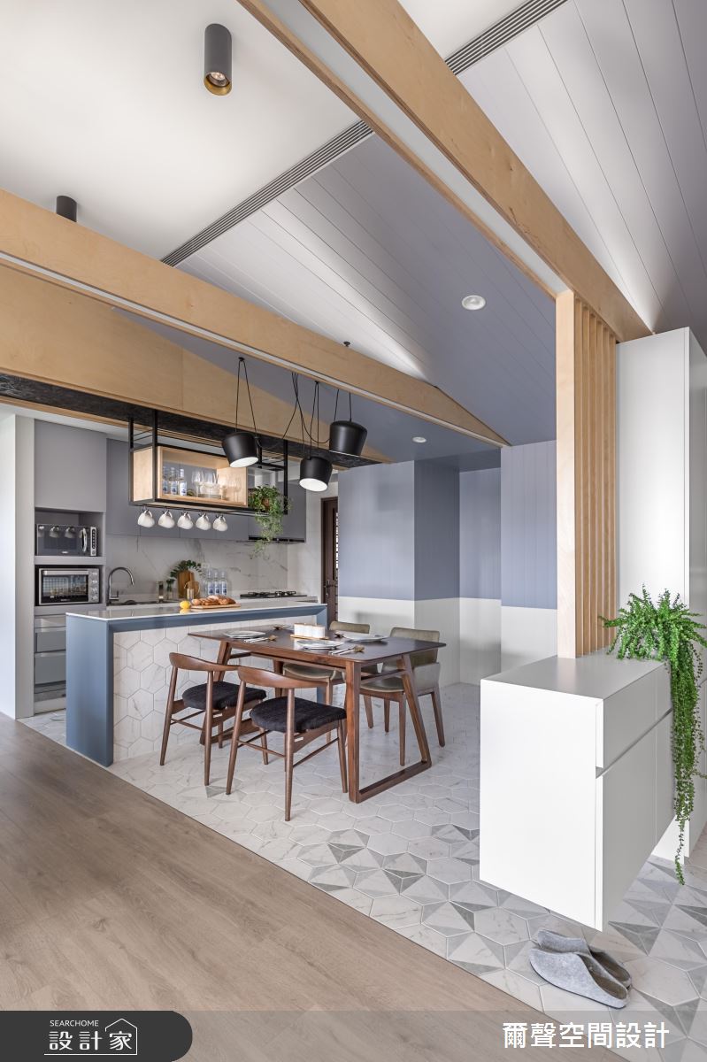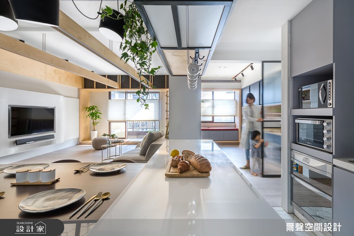 重視親子相處教育的父母,不妨可以北歐風為設計主軸,同時達到空間放大、親子同樂的優點。 36 坪中古屋有著隔間太多、兒童房過小的問題,著請爾聲空間進行格局規劃。