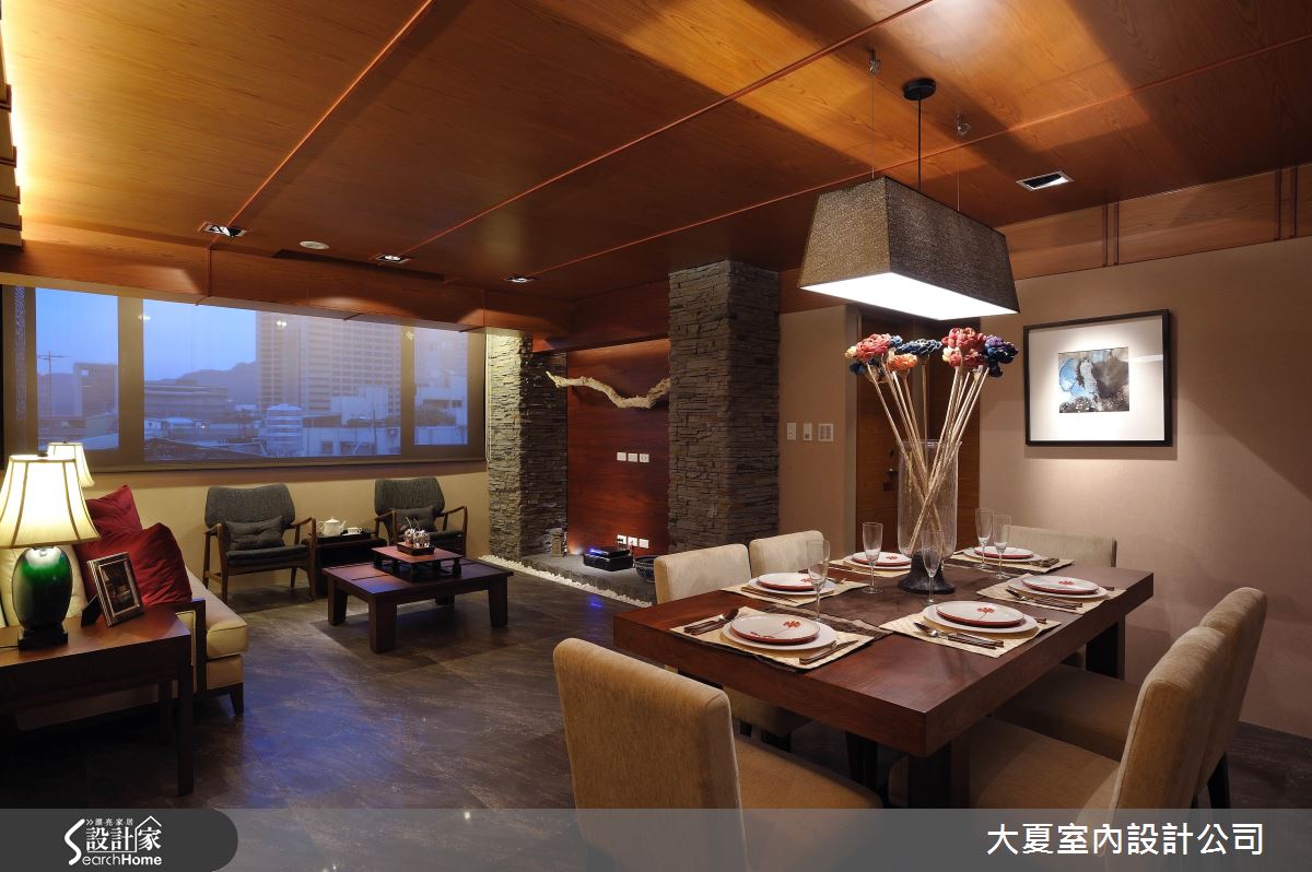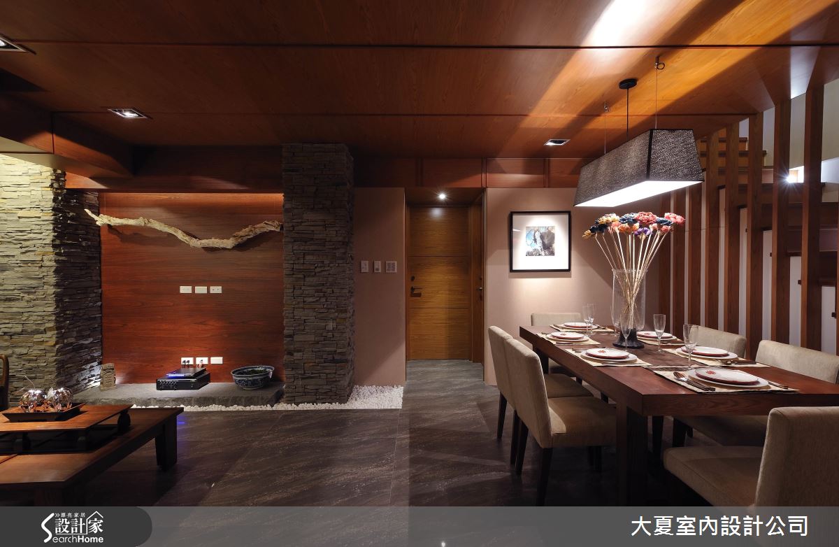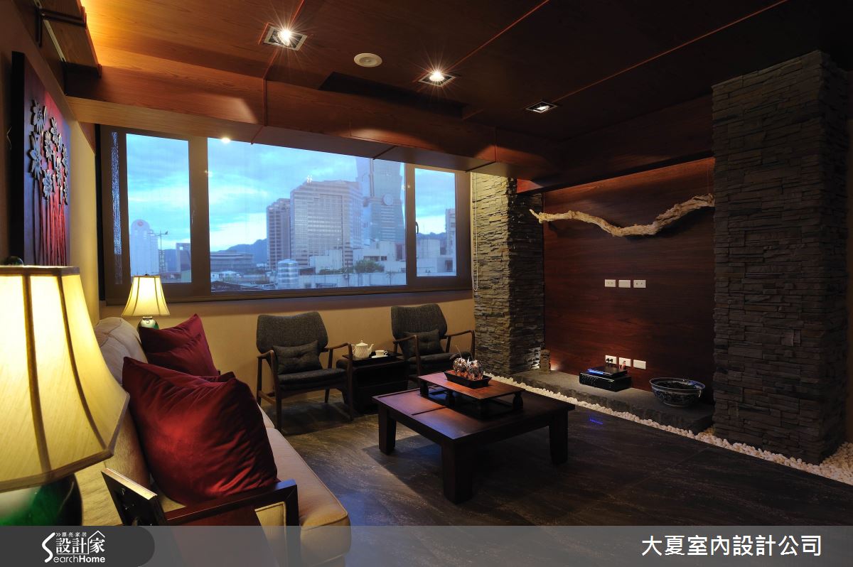藉由自然的元素鋪陳空間,深色調的質材堆疊,搭佐間接照明的投射,形塑沉穩、幽靜的禪風美學。