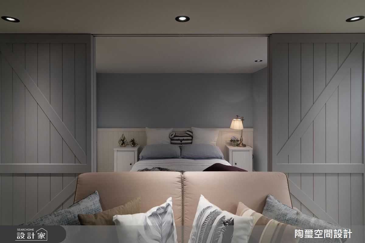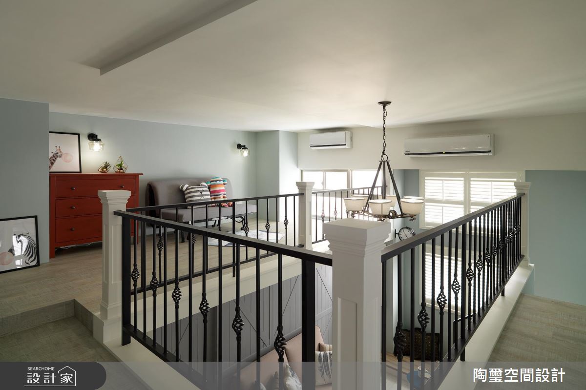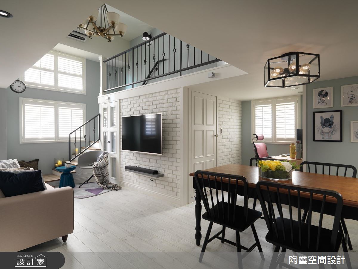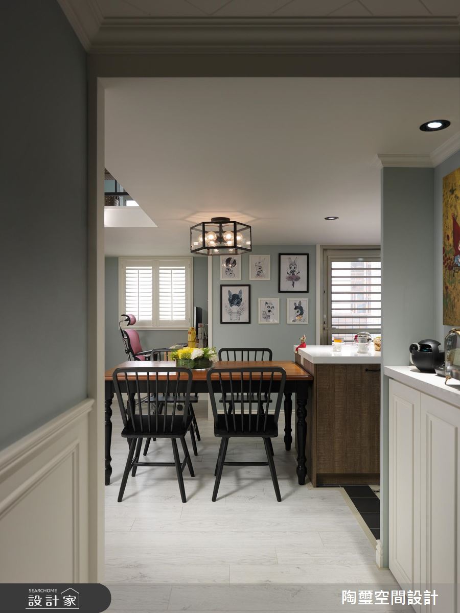 居宅除了挪動樓梯位置,也對調客廳、主臥區塊,把最好的採光留給公領域,讓主要活動盡量集中在一樓,且加入灰色穀倉彈性拉門,保有公私領域的互動串聯,使寢臥、廳區可同享電視牆功能,同時於牆面鋪陳輕盈的湖水綠,挹注清新質韻,主臥內則揮灑優雅淺藍,呈現安穩的休寢氣氛;餐廚區,將機能予以整合,讓吧檯與餐桌一體成型,促使空間更可被有效利用;二樓則留給收納儲藏室與起居客房,運用樓板的重作更新,讓一樓寢臥可獲得較高天花,二樓也圍塑出一小塊開放的起居地帶,凝聚新生活的美好軌跡!