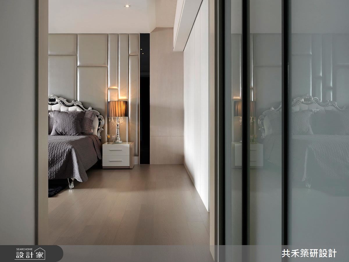 主臥內除新增更衣室外,更以充滿光澤的繃皮包覆床頭,做出雅致的牆面表情,兩側則擺設質感床頭燈,將生活品味烘托得更為知性,滿足女主人對寢臥風格的想望!