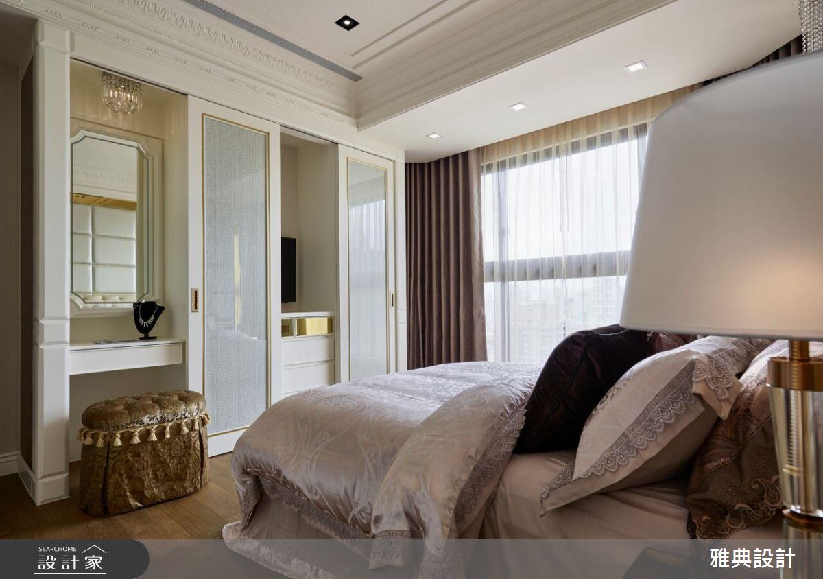 每間臥房皆配置專屬更衣室,除了善用造型門片修飾,讓機能存在與周邊格調更為契合,也挹注強大的收納空間,替使用者匯聚一切的夢幻功能!