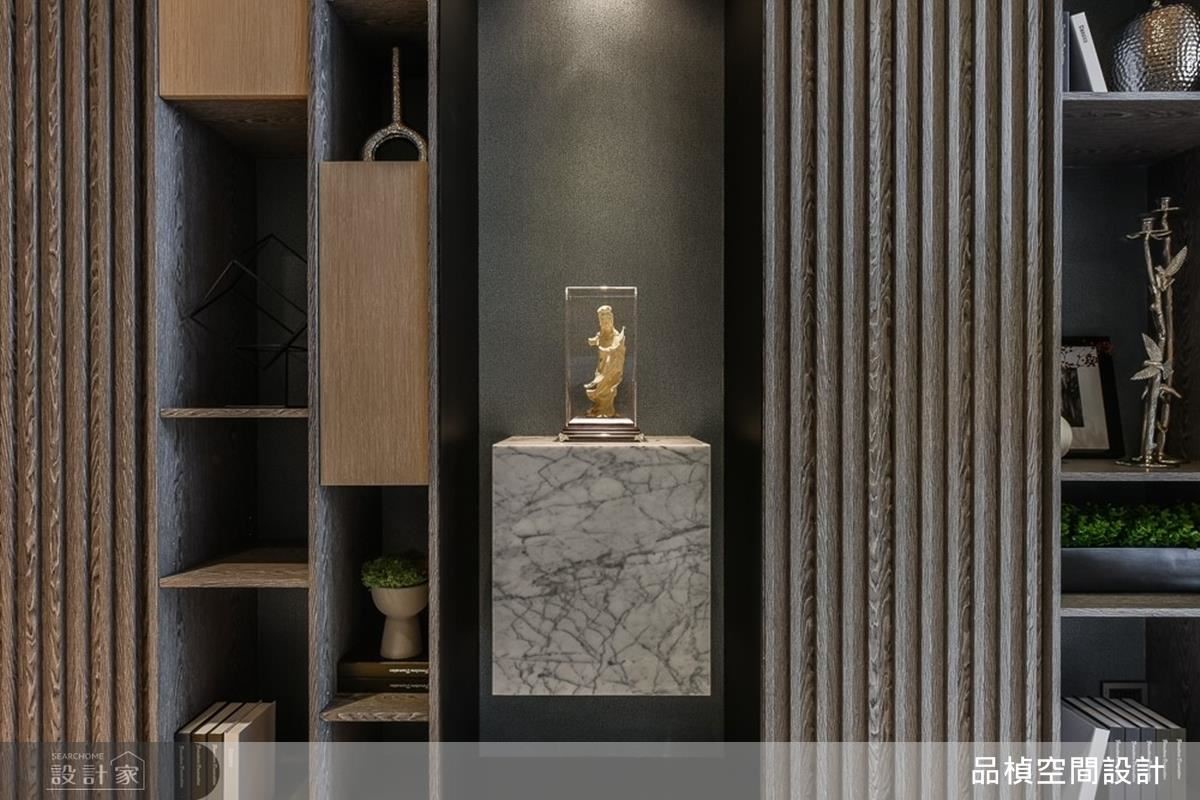 摒棄雕樑畫棟的繁複裝飾,以垂直、水平的俐落線性切割語彙,結合多元材質的肌理表現,讓全屋擁有豐富細節,不僅襯托屋主收藏的珍貴,更彰顯大宅內斂的品味。