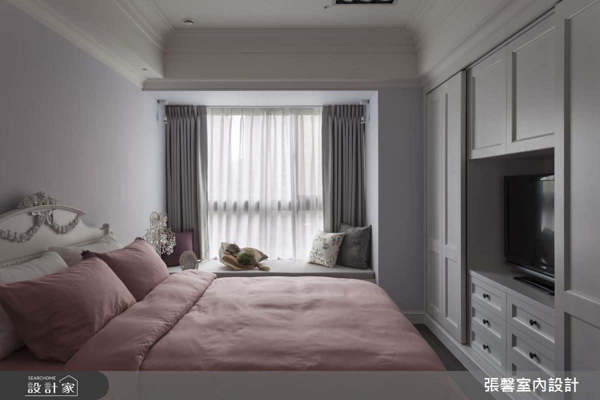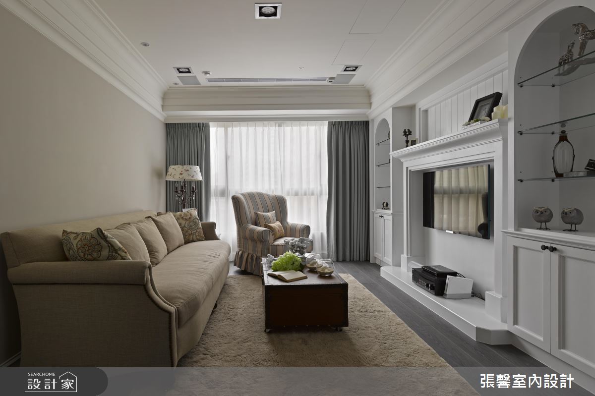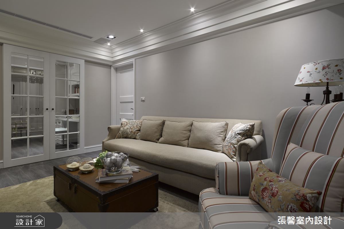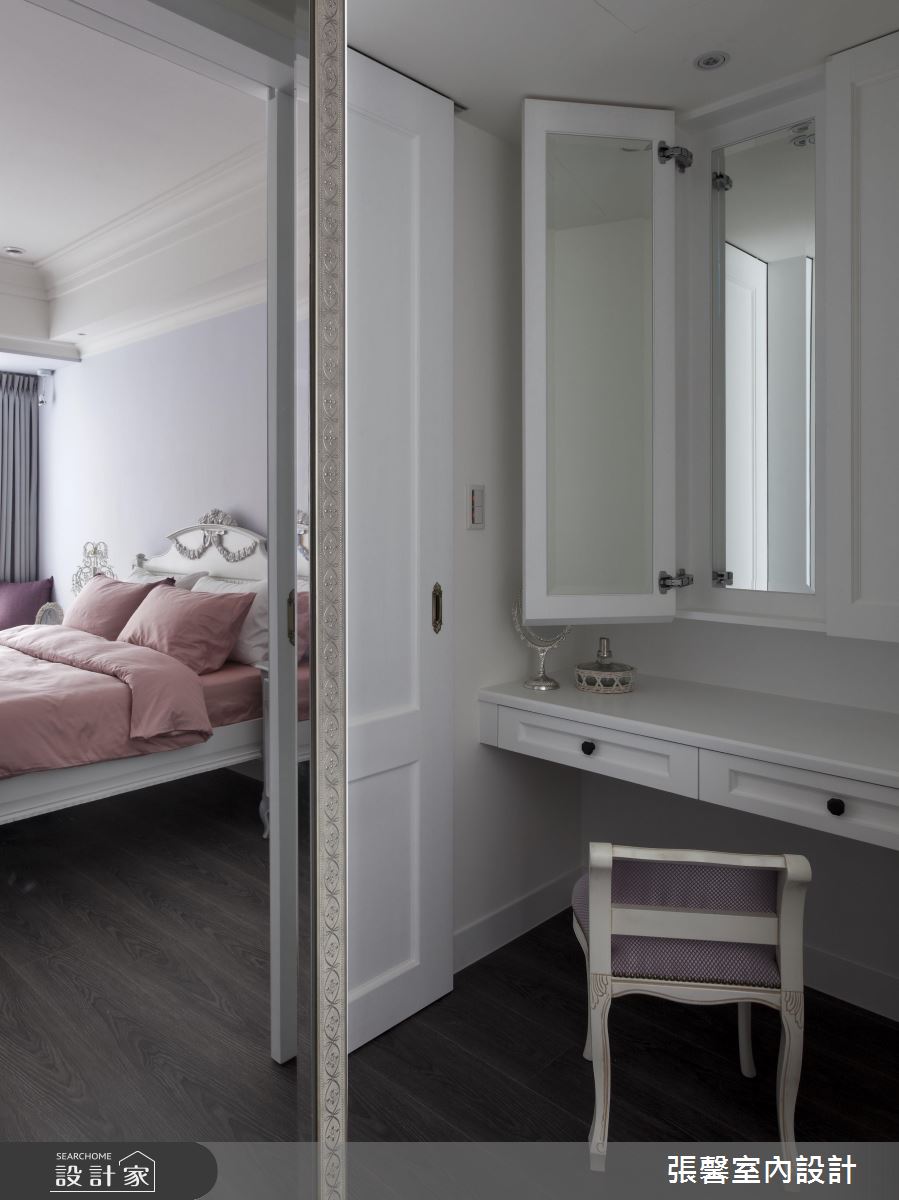 玄關利用壁紙及色塊表現,塑造精緻視感,溫馨中不乏精緻亮點;客廳則散發著濃濃的美式鄉村風情,以仿壁爐電視牆作為主角,搭配純淨基底及厚實家具,勾勒美國影集般的經典畫面,佐以拱型線條、實木線板等元素傳達美式精神,在腰線及天花板處,皆充分展現了細緻工藝;從客廳延伸到餐區,則將通往陽台的入口加以修飾,並加入充足儲物櫃,維持立面的俐落美觀,且考量家庭開伙機率不高,沒有過多的油煙問題,於是讓廚房呈開放格局,一旁規劃的美式玻璃櫃,亦讓屋主珍藏品能充分展示,型塑走道的美麗風景;書房突破以往設計概念,運用自由開闔的門片,提供有趣的層次動線,營造層疊交錯的格局,帶出閱讀場域中的安定感;主臥經由淡雅色彩與線條比例,抓住女主人嚮往的唯美風情,在滿足風格期待的同時,也透過美式門板的設計,將衣櫥、梳妝檯等實用機能隱於門片後方!