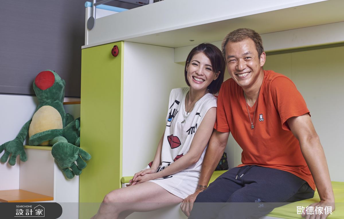 藝人夫妻檔阿 Ben 與小可擁有 3 個可愛的孩子,為了給予孩子們健康無憂的成長環境,在群山環繞的市郊買下 120 坪的透天厝,同樣選用以環保、抗敏為宗旨的歐德團隊打造新家。