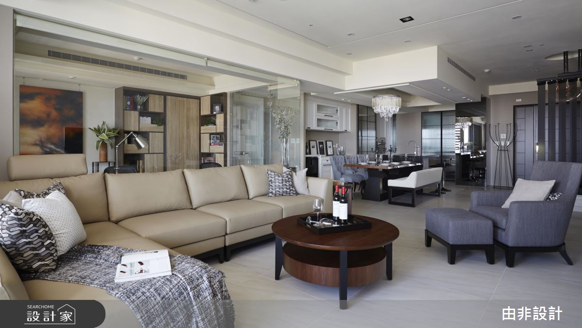 同時具備建築、室內設計兩種專業,並經過完整學院訓練、擁有豐富實務操作經驗的由非設計團隊,在本案 54 坪的毛胚屋規劃上,從格局分配、機能設計、風格營造、軟件布置著手,為居住者打造出「全面」、「合理」、「有效」的居住空間!