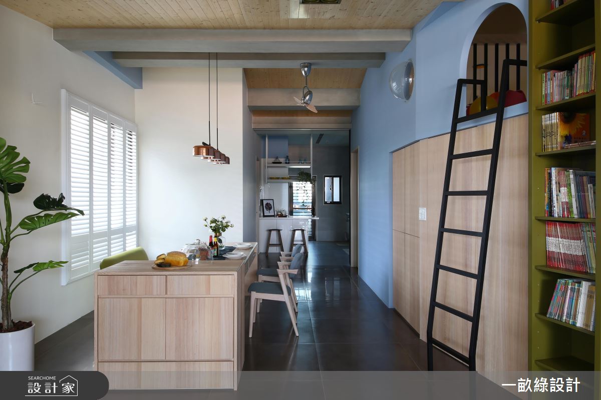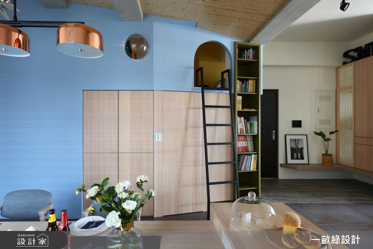 玄關領域,運用木作肌理打造穿鞋區及鞋櫃,揉入靜謐的日式調性語彙,營造入室後的氛圍轉換;廳區內則給予充裕採光進駐,照亮一室朝氣與活力,同時運用軟件、櫃面、牆面色彩等加以調和,融入淡紫、亮藍或鮮黃等,定義整體的明快基底,並在餐廳旁打造輕巧的局部夾層,搭配爬梯、拱門造型及斜天花屋頂,交織出想像力十足的童趣視野,替家中孩子闢出一塊專屬遊樂園地;寢臥內,則回歸休憩意義,以採光、家具型塑柔和調性,搭佐大容量的收納櫃包覆床頭,層板、抽屜、封閉式櫃體等一應俱全,整合出高實用性的起居機能!