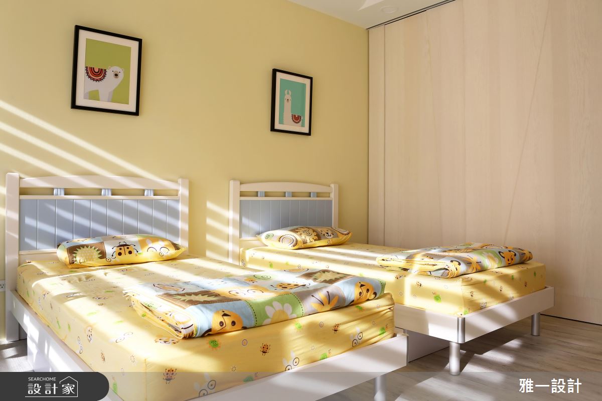 小孩房不做太多的設計,並給予令人愉悅的黃色主調,搭襯採光的篩落進駐,營造出可愛童趣的溫暖氛圍!