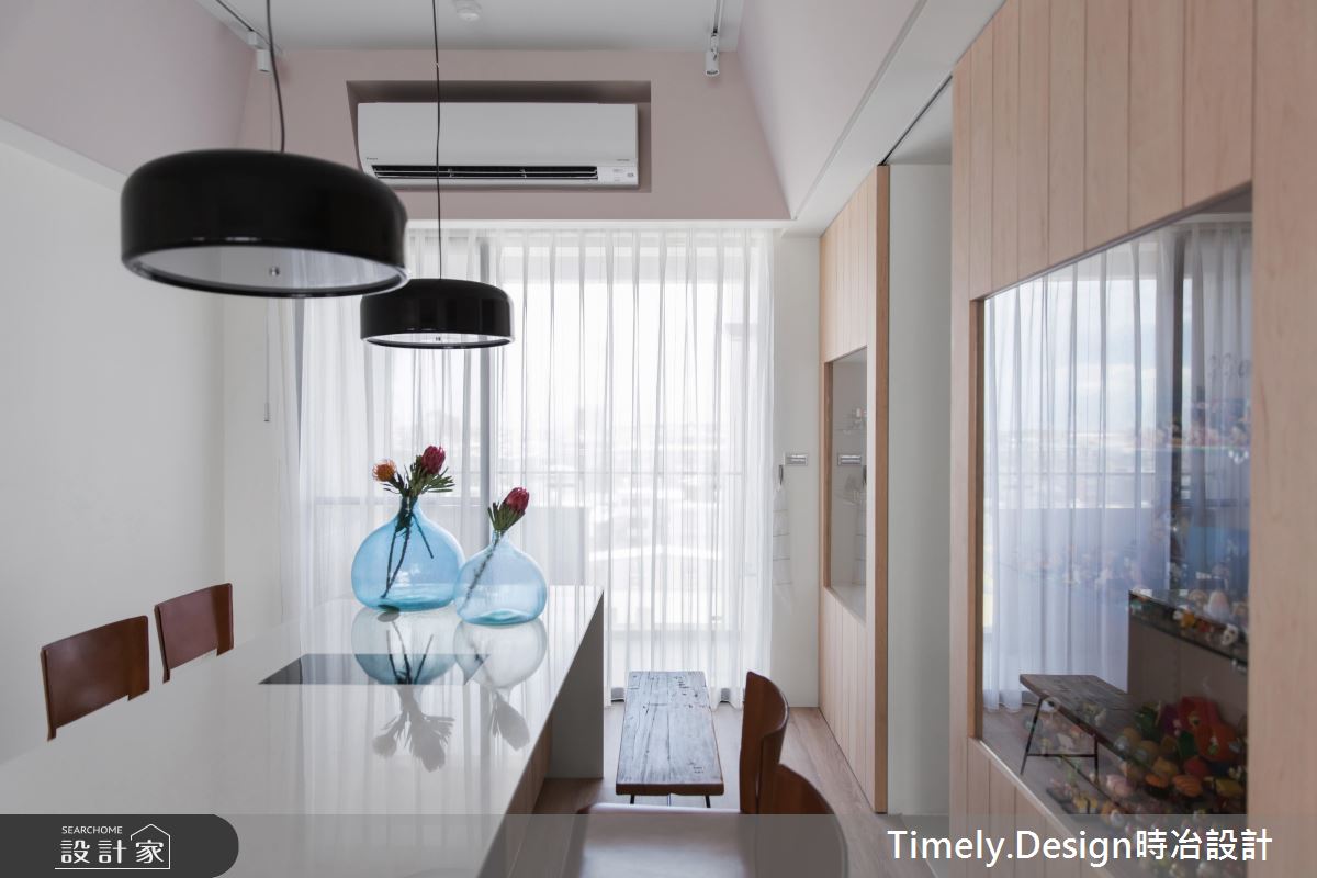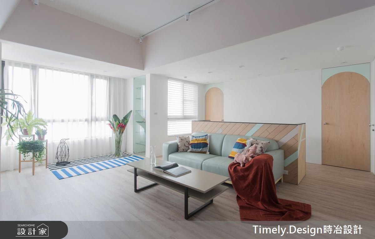 繽紛、清新的色調,讓空間洋溢著微微的甜度,這處 27 坪的休閒風住宅,屋主是一對姊妹,姊姊平常喜歡輕食烹飪,而妹妹則需要招待客人的聚會空間,設計師依據姊妹倆不同的需求,打造出開放明亮的居家空間,同時也兼顧姊妹倆的隱私需求,營造出療癒、舒適的住家氛圍。
