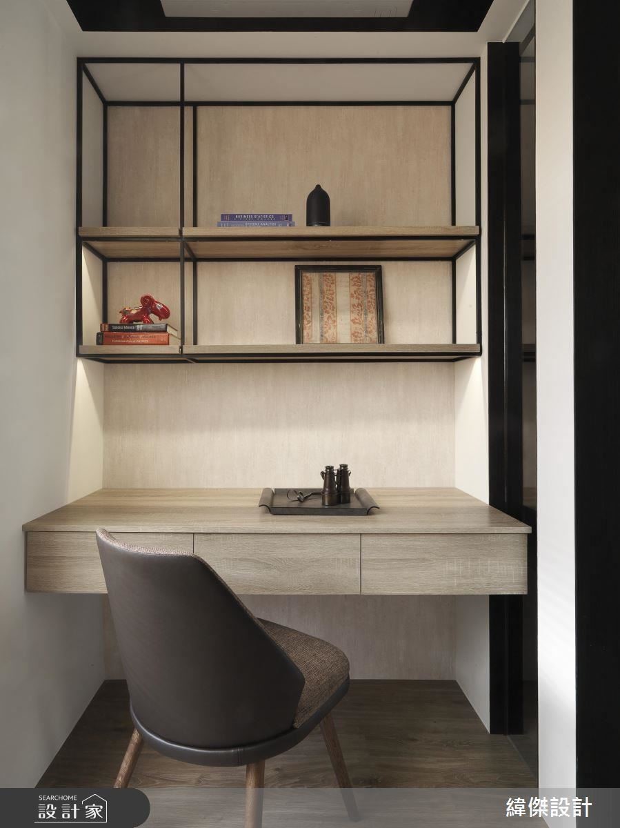 透光玻璃鐵件拉門作為廚房與書房的空間界定,公共區域得以向靠窗面借光,藉由層次感的光照,增添活動區域的舒適度,無形中擴大室內空間疆界,仿佛與外界銜接起來,創造更健康宜居的環境。玻璃拉門提供隔絕廚房熱氣,增加冷房效果,造型與功能兼而有之。